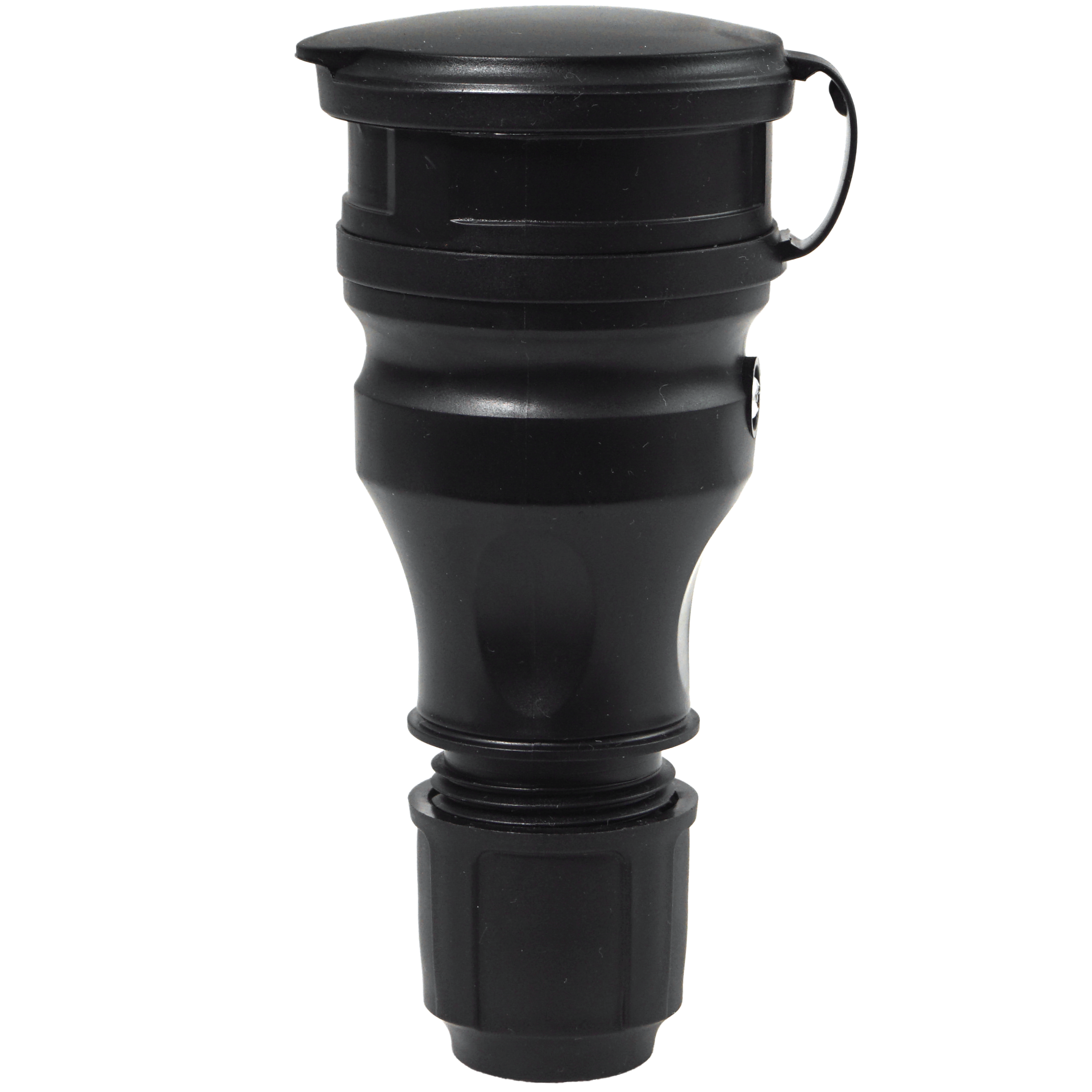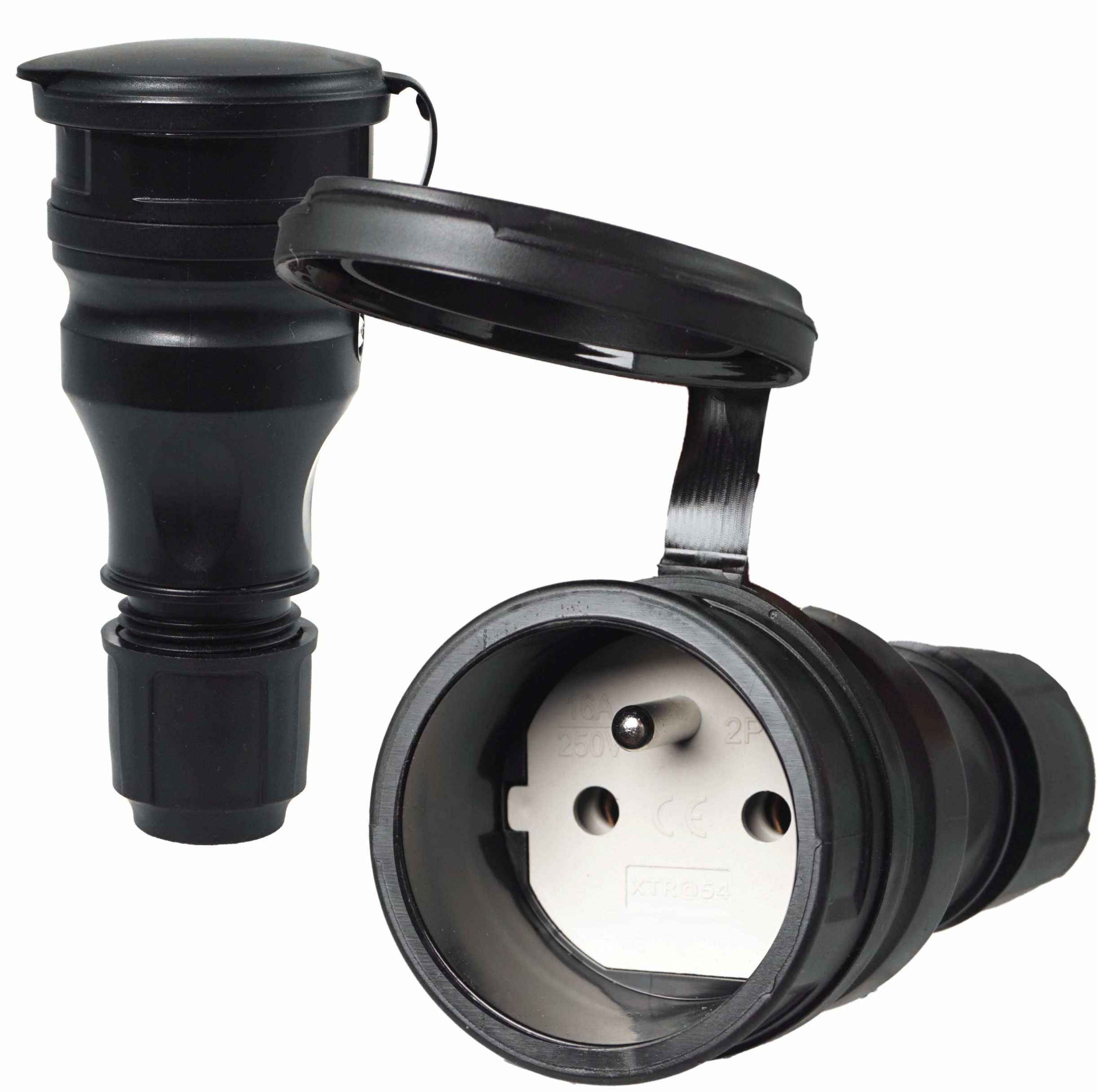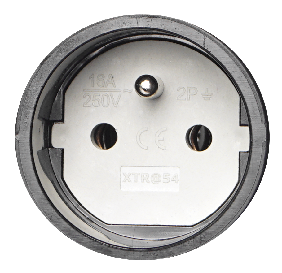 Gniazdo prądowe, gumowe, hermetyczne- IP54, do montażu na kabel 16A 250V, 2P+Z, z klapką, w kolorze czarnym.