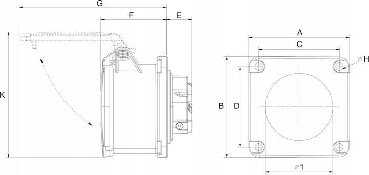 GNIAZDO SIŁOWE, TABLICOWE, PROSTE, Z KLAPKĄ, 16A 4P, 415V IP44.