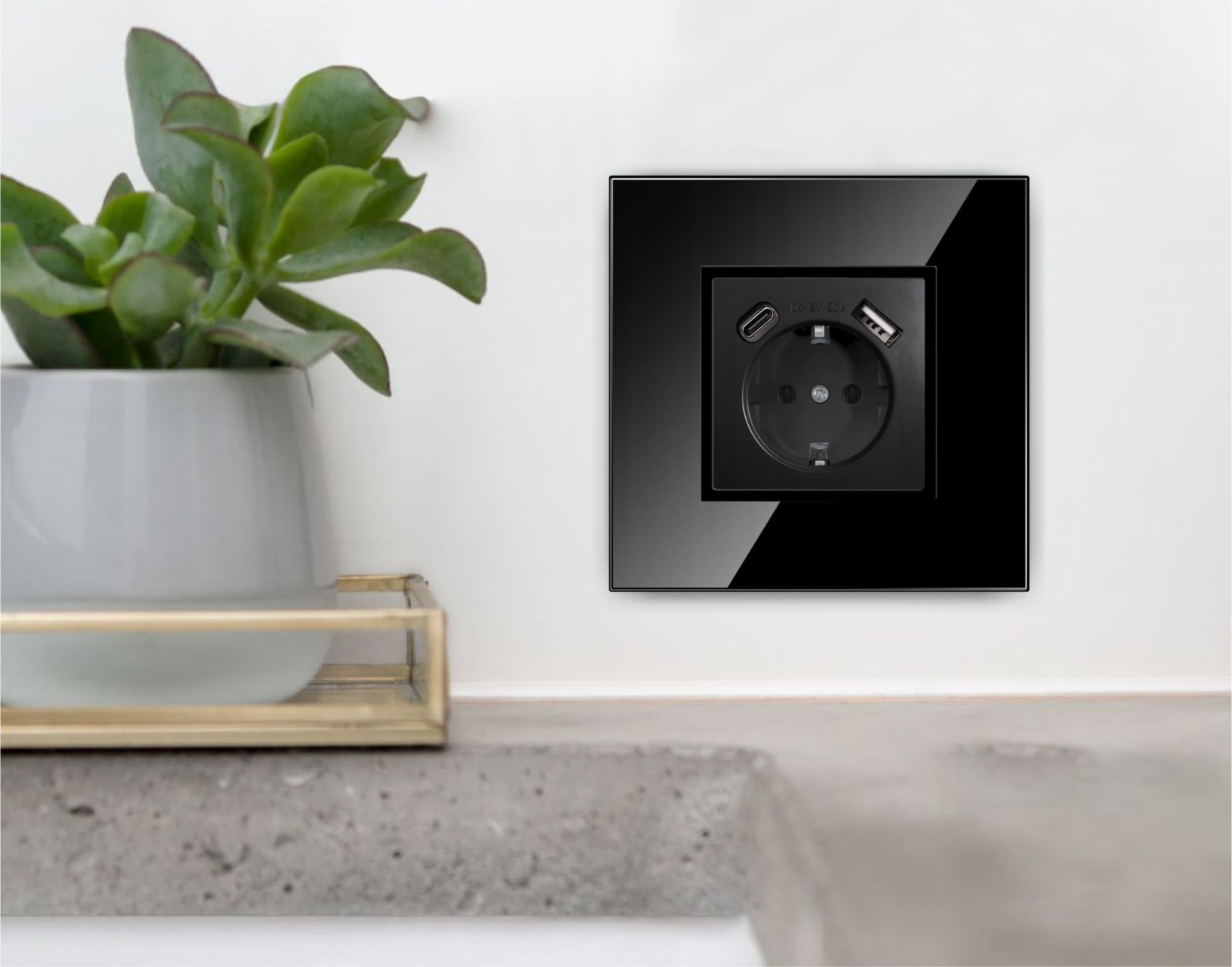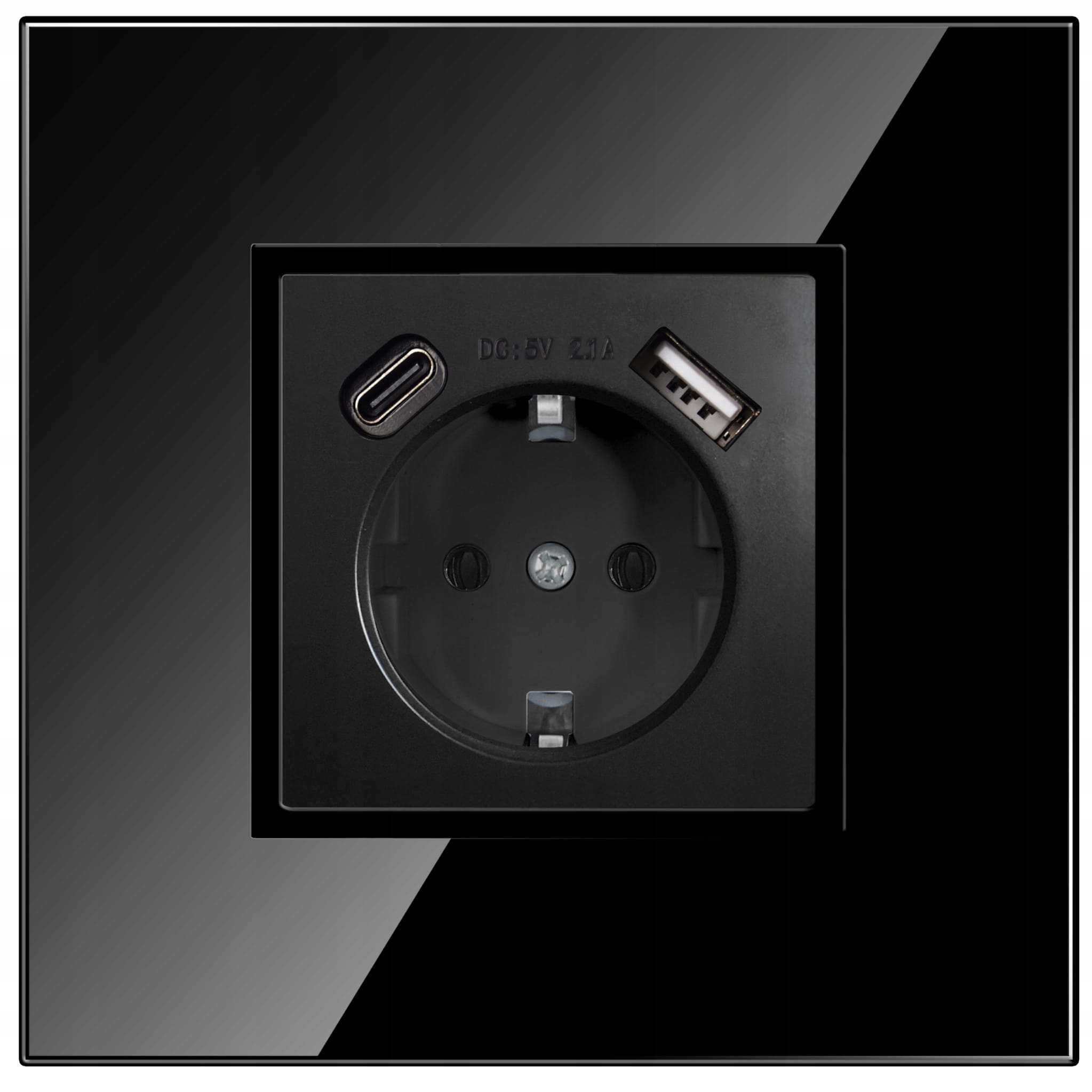 GNIAZDO GNIAZDKO SZKLANE POJEDYNCZE SCHUKO CZARNE PODTYNKOWE USB I USB C PREMIUM