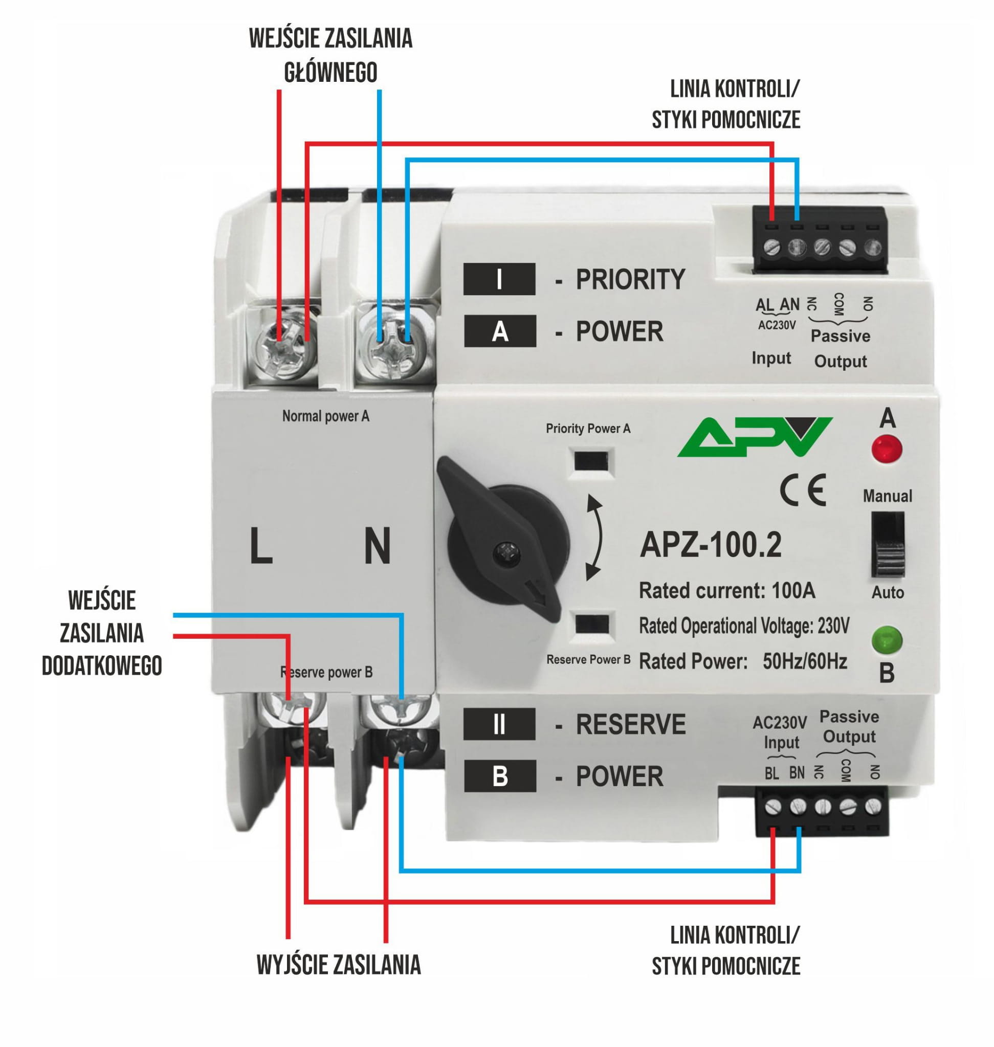 - ✔️Cel: Przełącz na zasilanie awaryjne w przypadku awarii zasilania i przełącz na zasilanie podstawowe, gdy pojawi się zasilanie