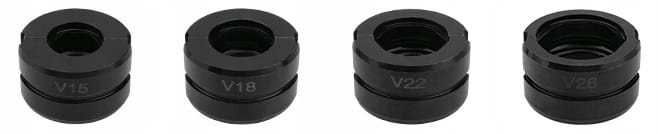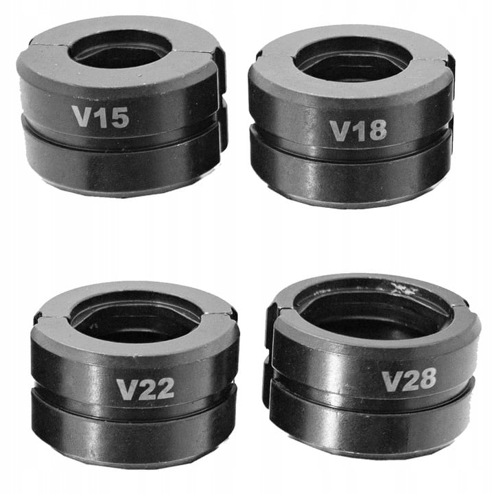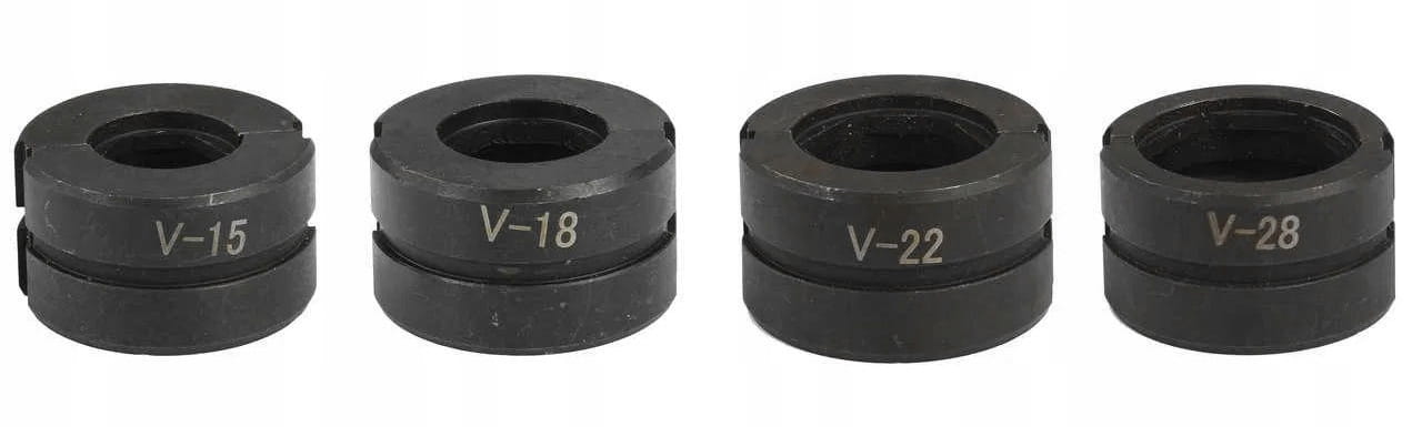 Zestaw 5 matryc, kamieni, typu V, do zaciskarek rur PEX, w rozmiarach: 15, 18, 22, 28 mm, marki Adelid.