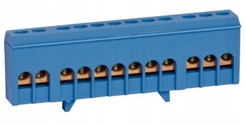LISTWA ZEROWA MOSTEK, Z OBUDOWĄ IZOLUJĄCĄ, 12 OTWOROWA, NIEBIESKA.