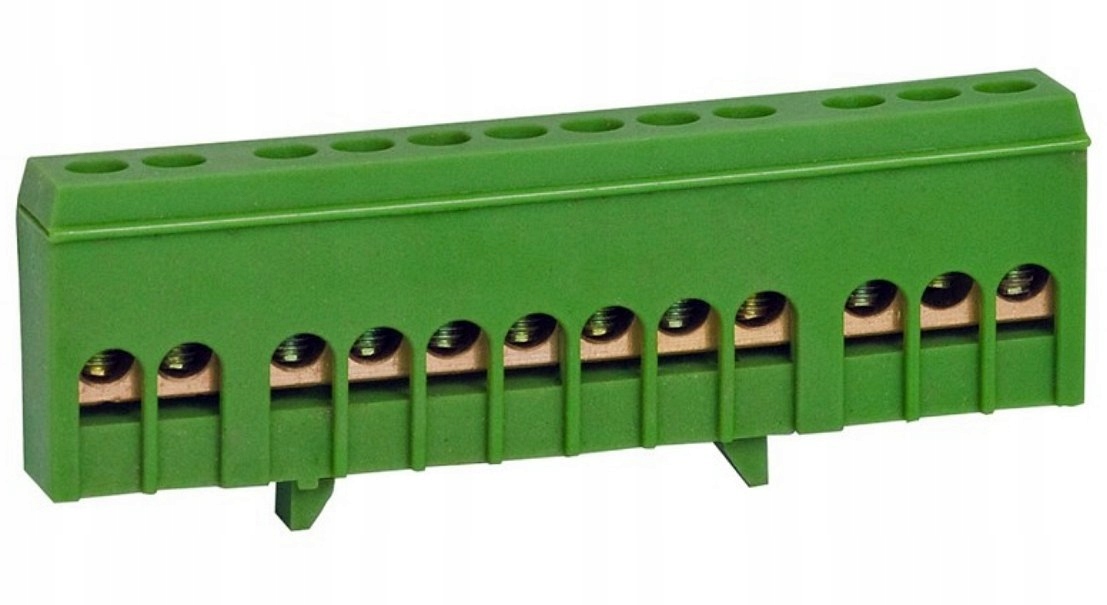 LISTWA UZIEMIAJĄCA, ZACISKOWA, 12 OTWOROWA, ZIELONA.