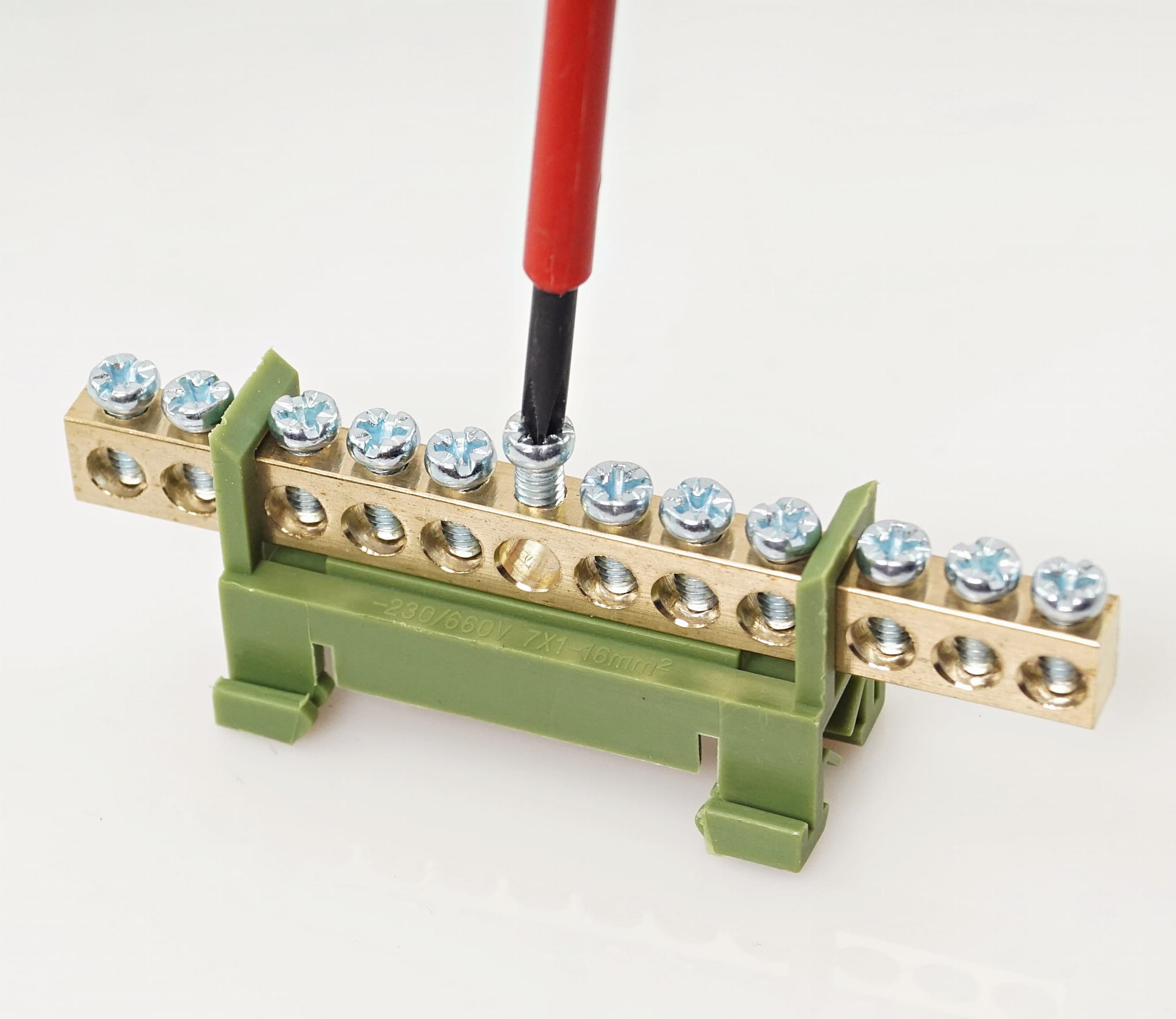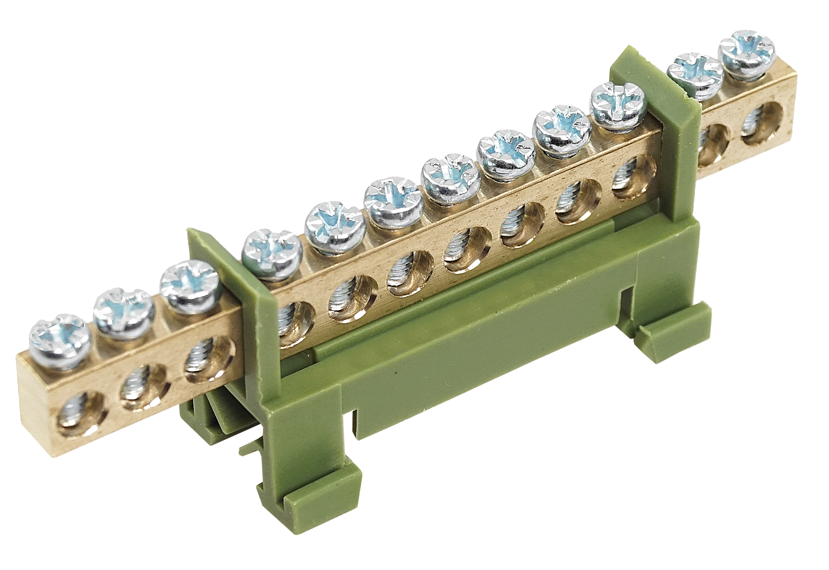 LISTWA UZIEMIAJĄCA, ZACISKOWA, 12 OTWOROWA, ZIELONA.