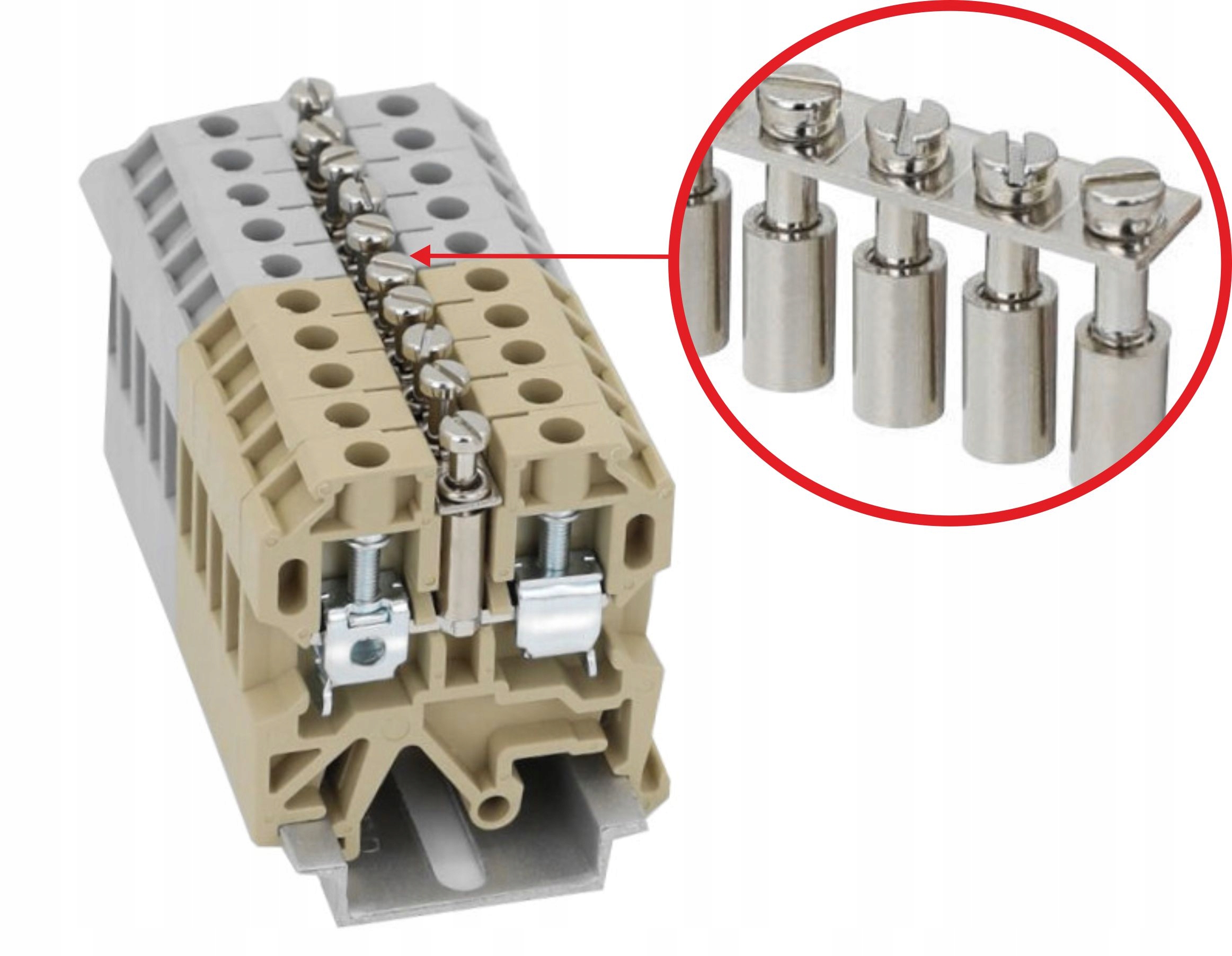 Łączone mostki śrubowe, poprzeczne. Perforowana listwa połączeniowa, ze śrubami uwięzionymi i podkładkami dystansowymi.