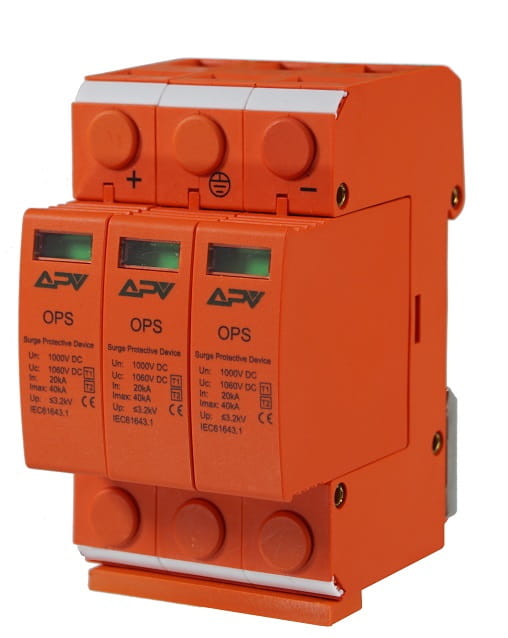 - Ochronnik APV zbudowany jest z wykorzystaniem specjalnego warystora o dużym przepływie oraz iskiernika gazowego.