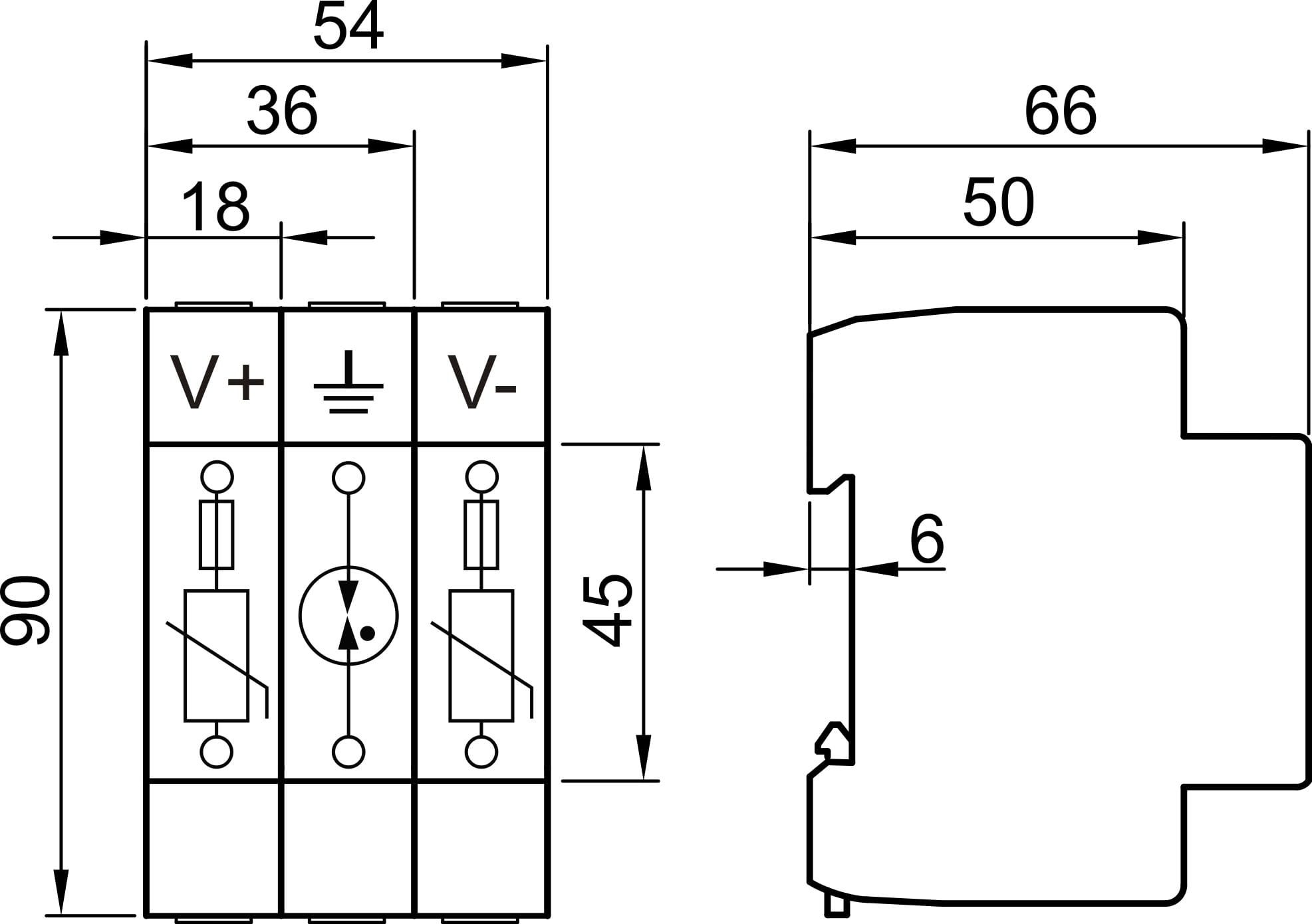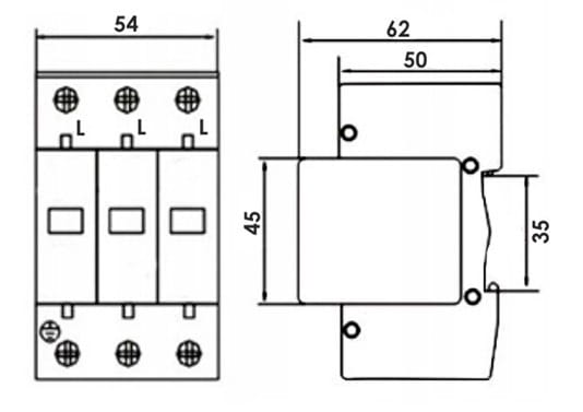 Ochronnik przeciwprzepięciowy fotowoltaiczny klasy B+C (T1+T2), 3P.