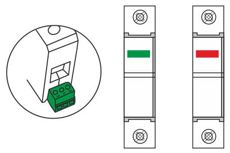 - Ochronniki przepięć klasy B+C (T1+T2) służą do ochrony instalacji fotowoltaicznych, przed napięciami indukowanymi, łączeniowymi oraz wywołanymi przez czynniki atmosferyczne. Wyposażone są w wizualny wskaźnik działania (zielony – ochrona, czerwony – brak ochrony).