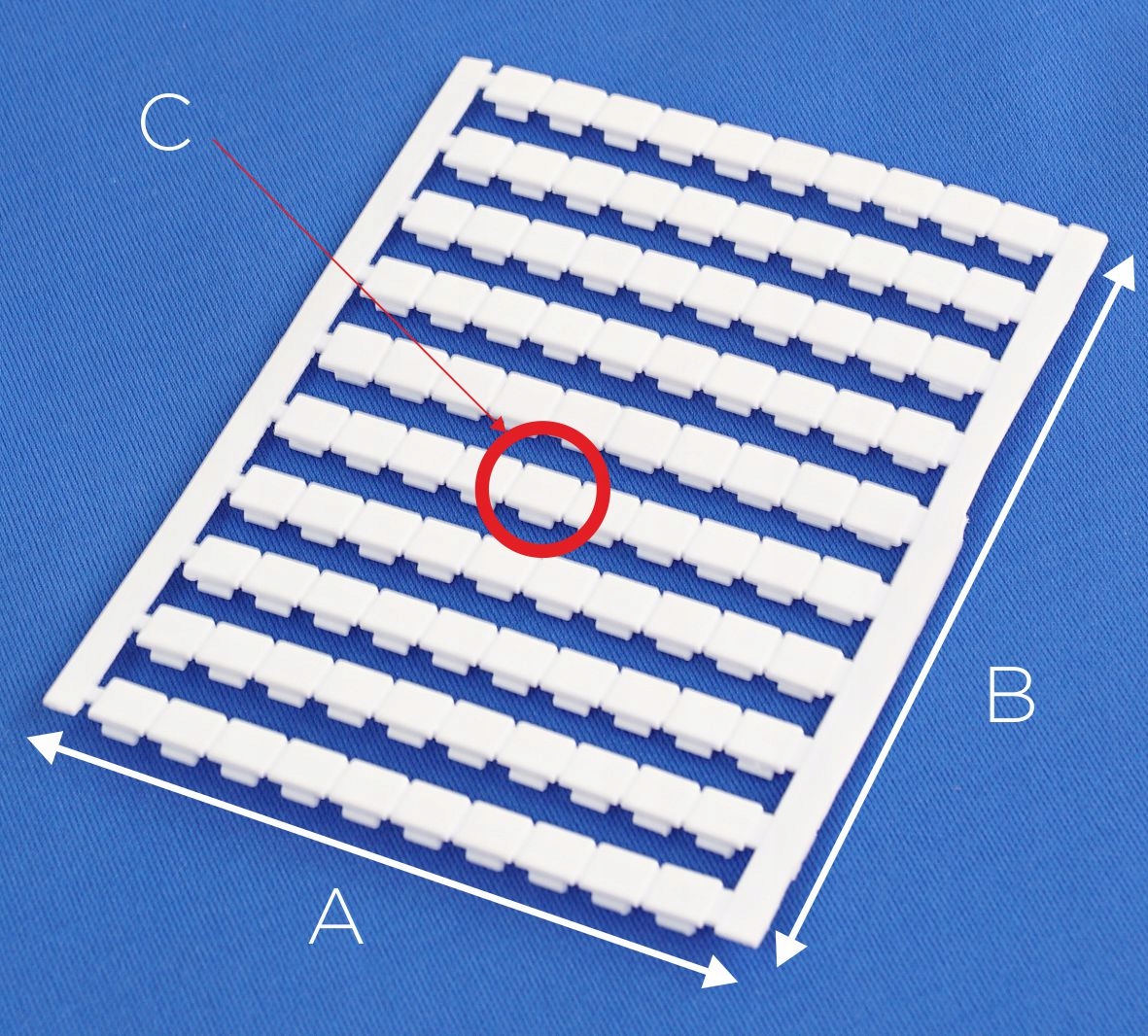 Oznaczniki wykonywane są z tworzywa sztucznego, w postaci białej taśmy profilowanej, do samodzielnego wypełnienia treścią.