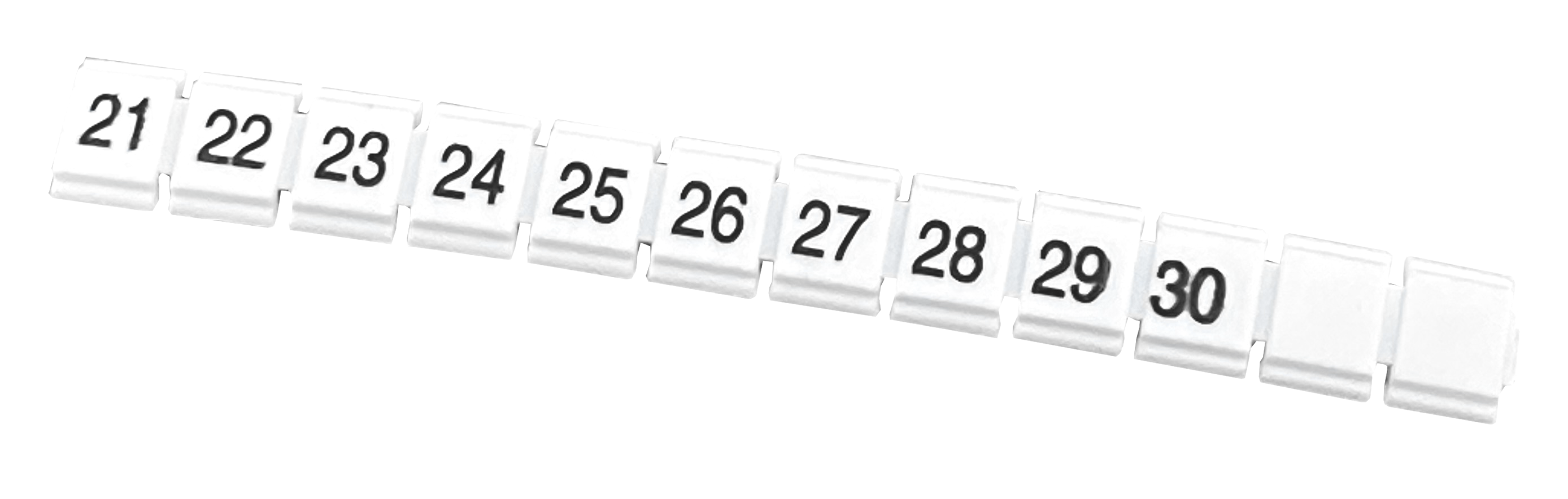 Taśmy znacznikowe, oznaczenie do złączek szynowych ZS 2,5, PCV, 10 szt., oznaczenie od 21 do 30.