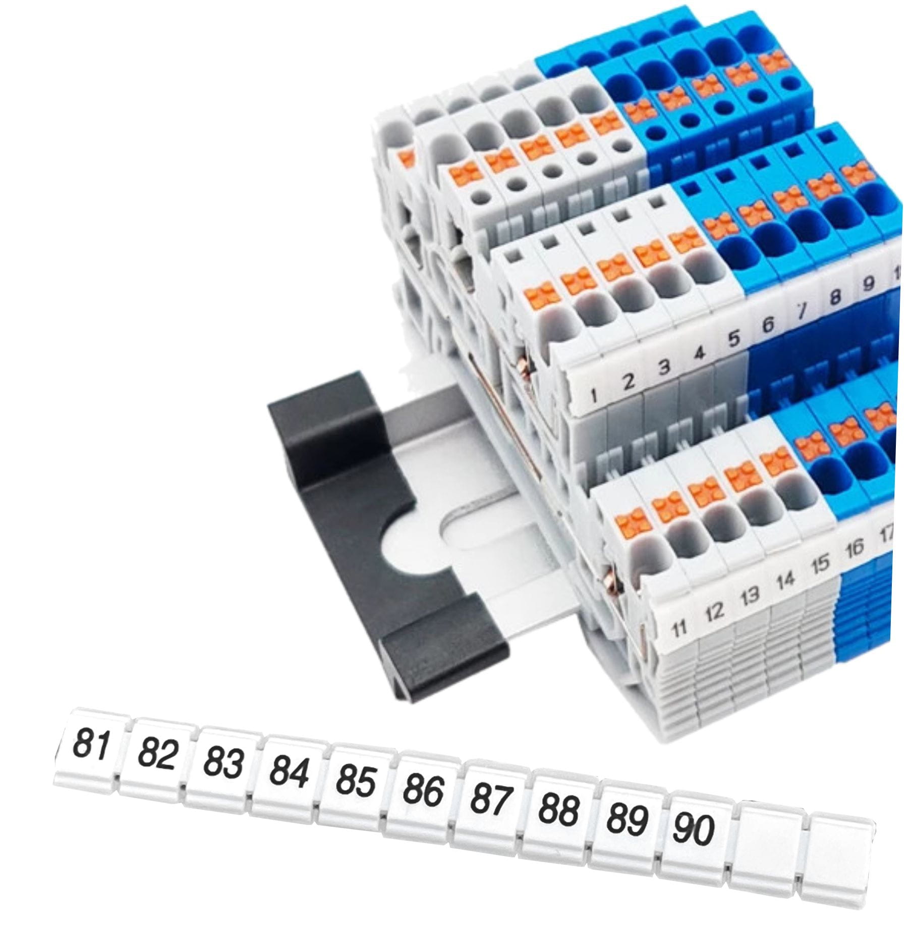 Taśmy znacznikowe, oznaczenie do złączek szynowych ZS 2,5, PCV, 10 szt., oznaczenie od 81 do 90.