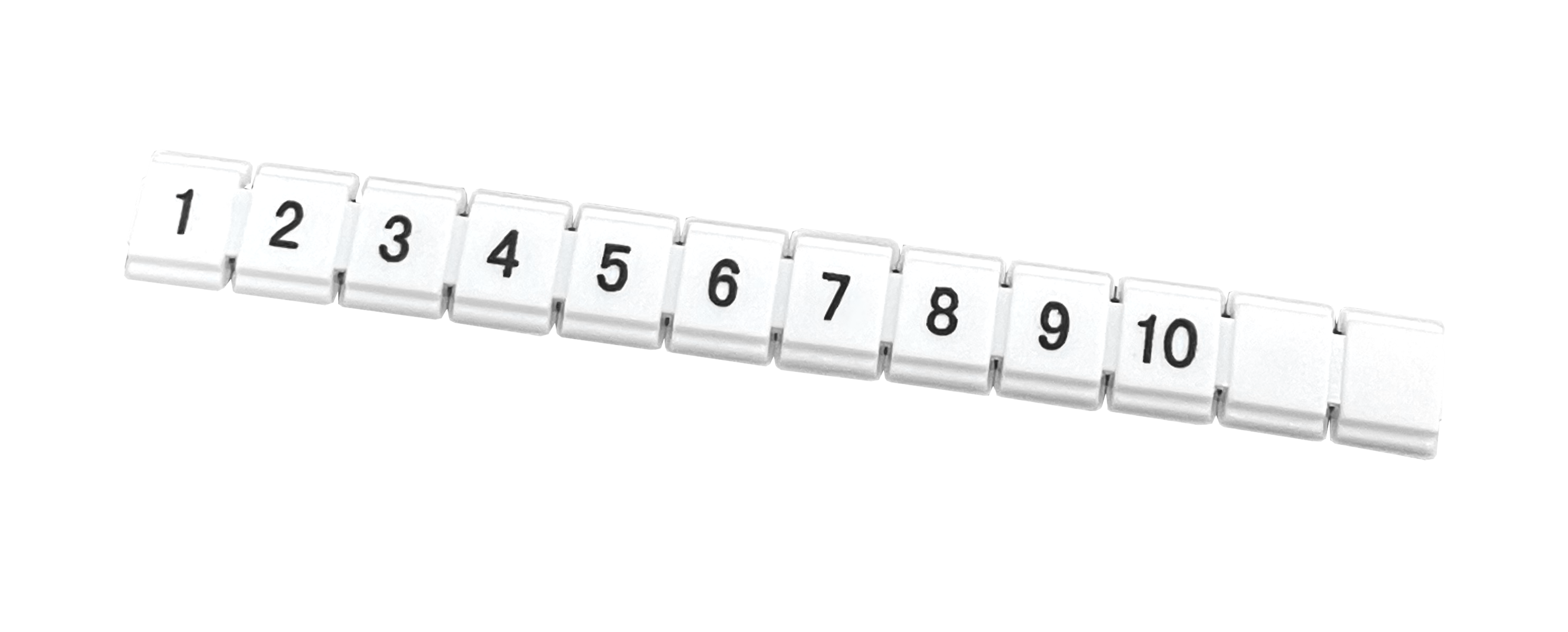 - Oznaczniki wykonywane są z tworzywa sztucznego, w postaci białej taśmy profilowanej, do samodzielnego wypełnienia treścią.