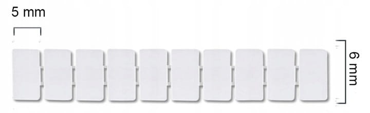 - Taśma jest nacinana z podziałką, co umożliwia odrywanie pojedynczych oznaczników.