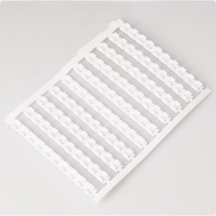 Oznaczniki wykonywane są z tworzywa sztucznego, w postaci białej taśmy profilowanej, do samodzielnego wypełnienia treścią.