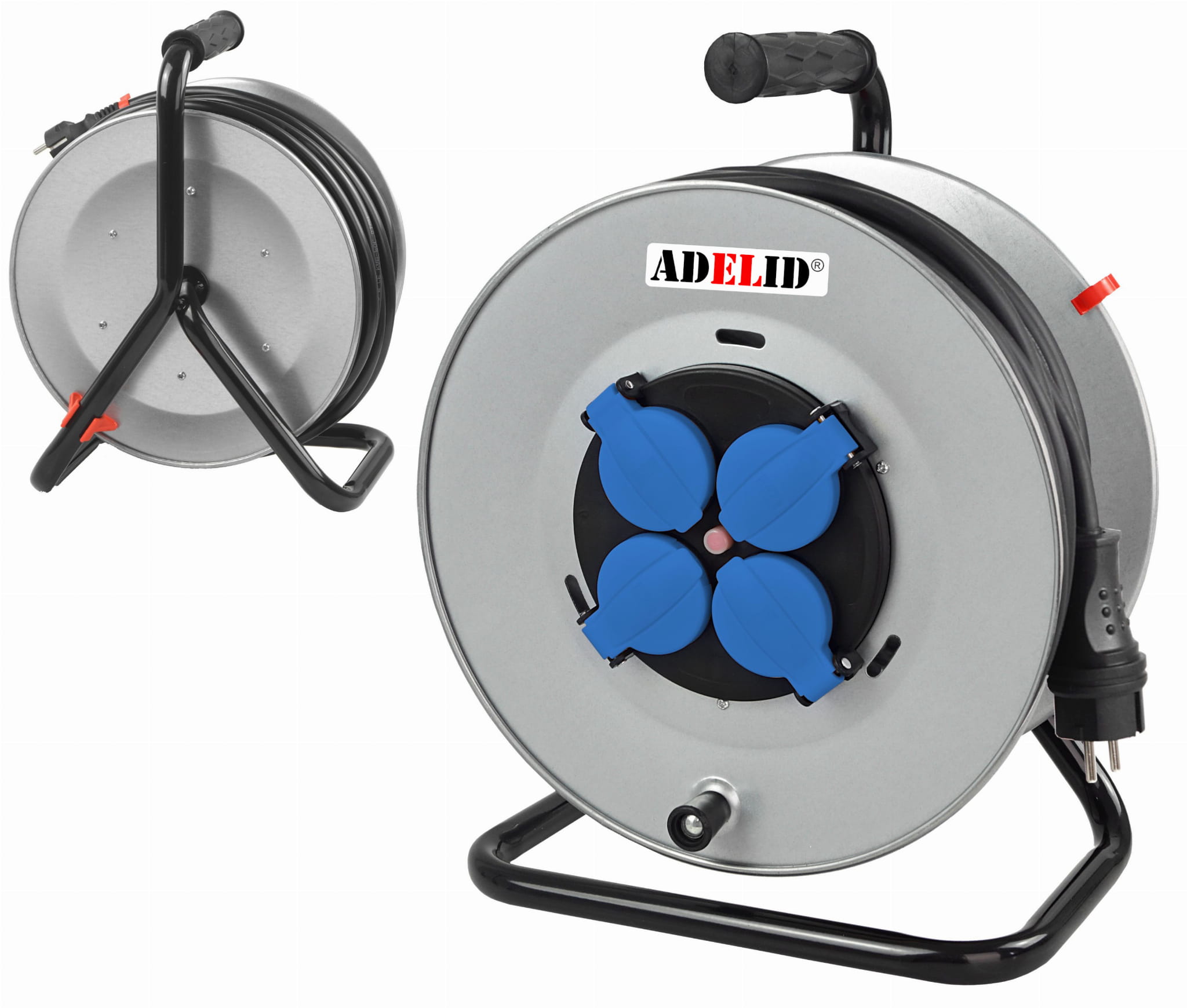 - Wysokiej jakości przedłużacz na bębnie metalowym- zwijaku budowlanym, do użytku na budowie, w ogrodach, w pomieszczeniach biurowych czy domowych.