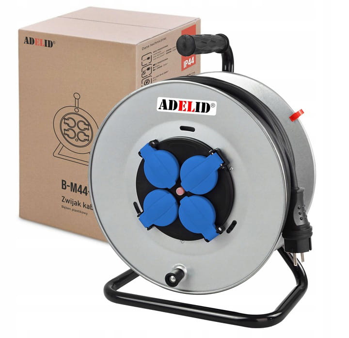 - Wysokiej jakości przedłużacz na bębnie metalowym- zwijaku budowlanym, do użytku na budowie, w ogrodach, w pomieszczeniach biurowych czy domowych.