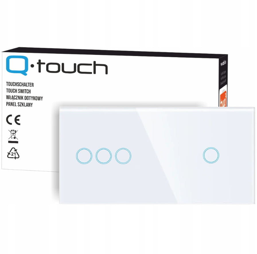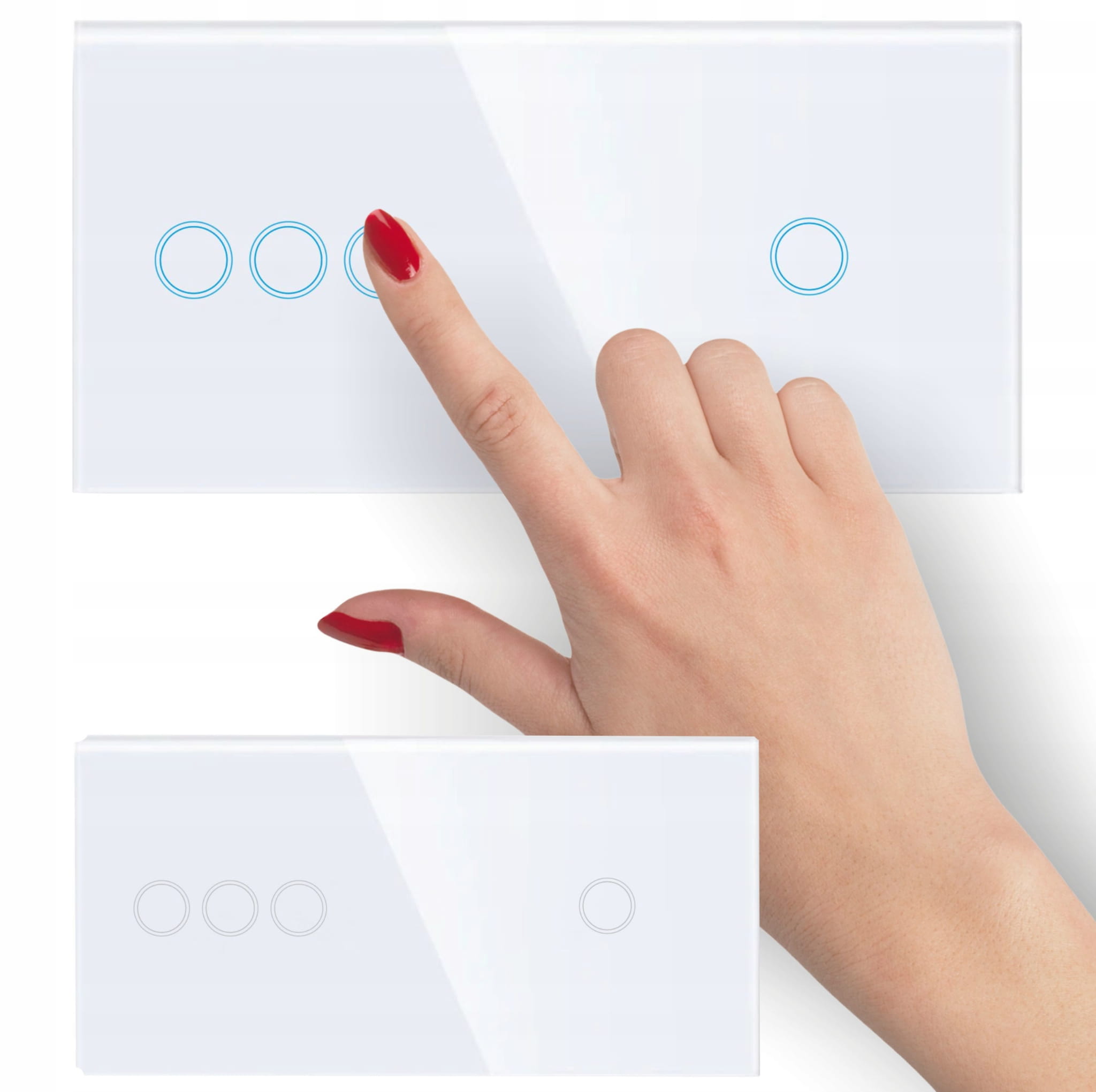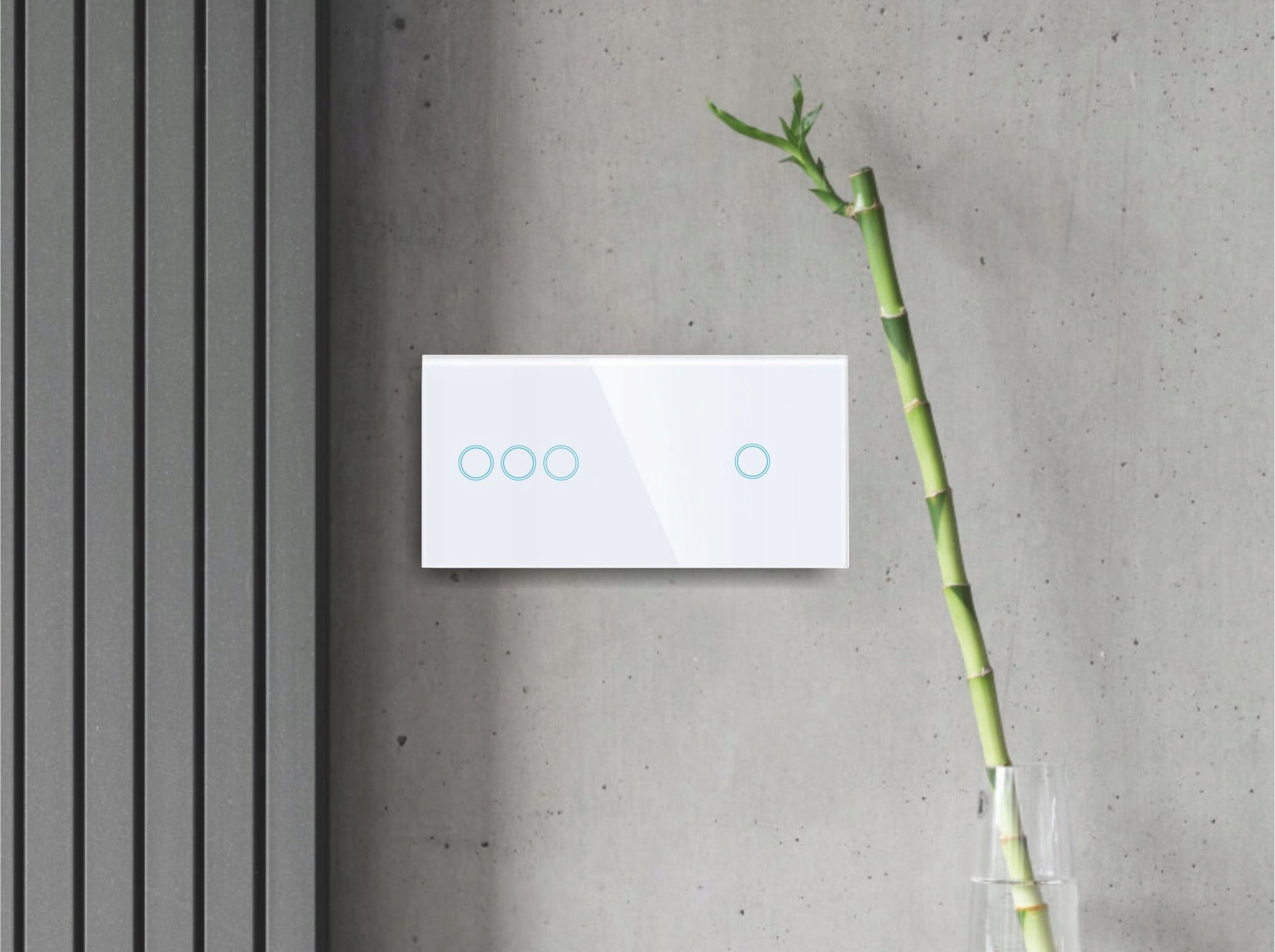 Panel szklany dotykowy włącznik światła poczwórny biały 3+1 2 moduły LED