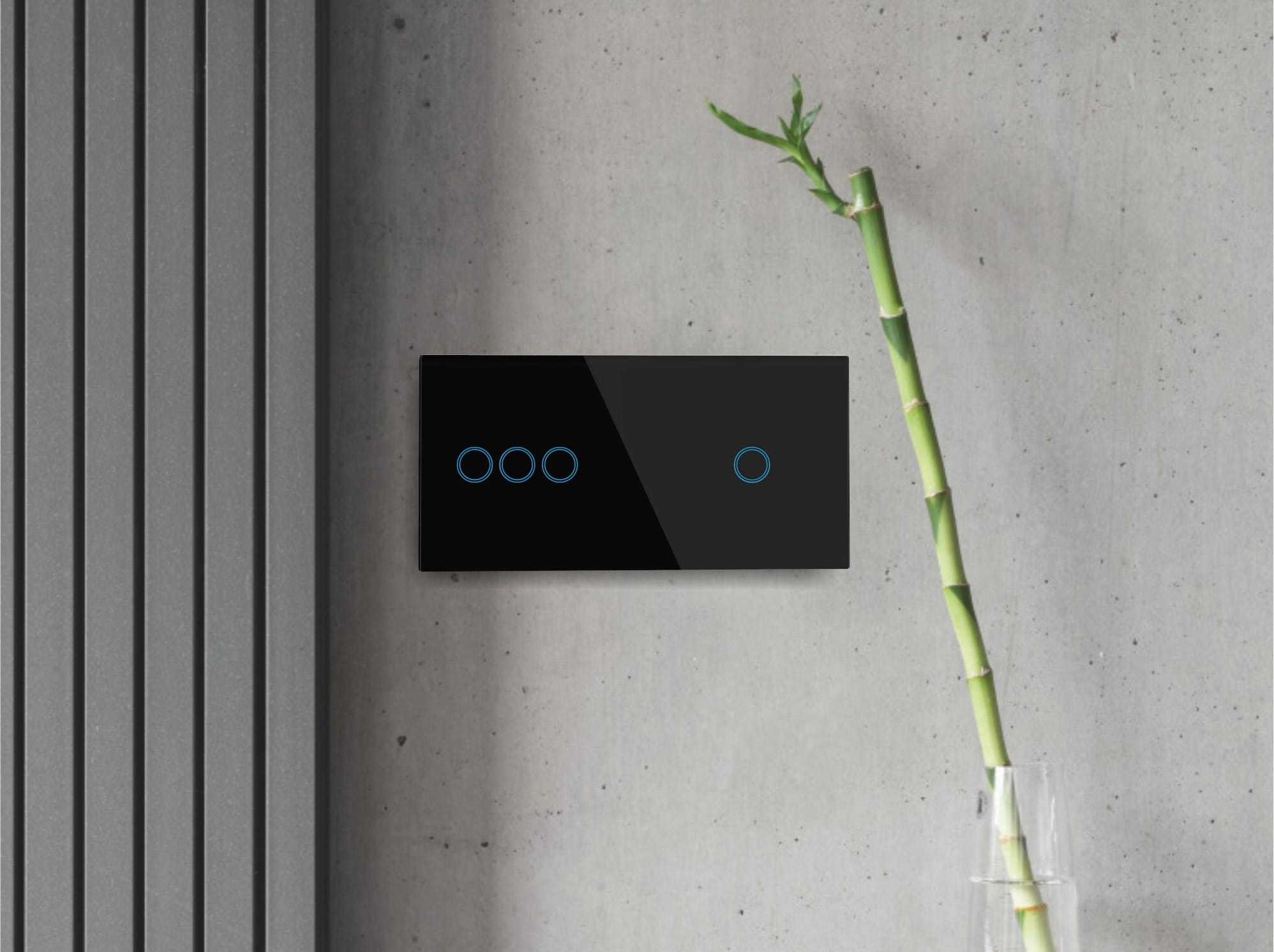 Panel szklany dotykowy włącznik światła poczwórny czarny 3+1 2 moduły LED