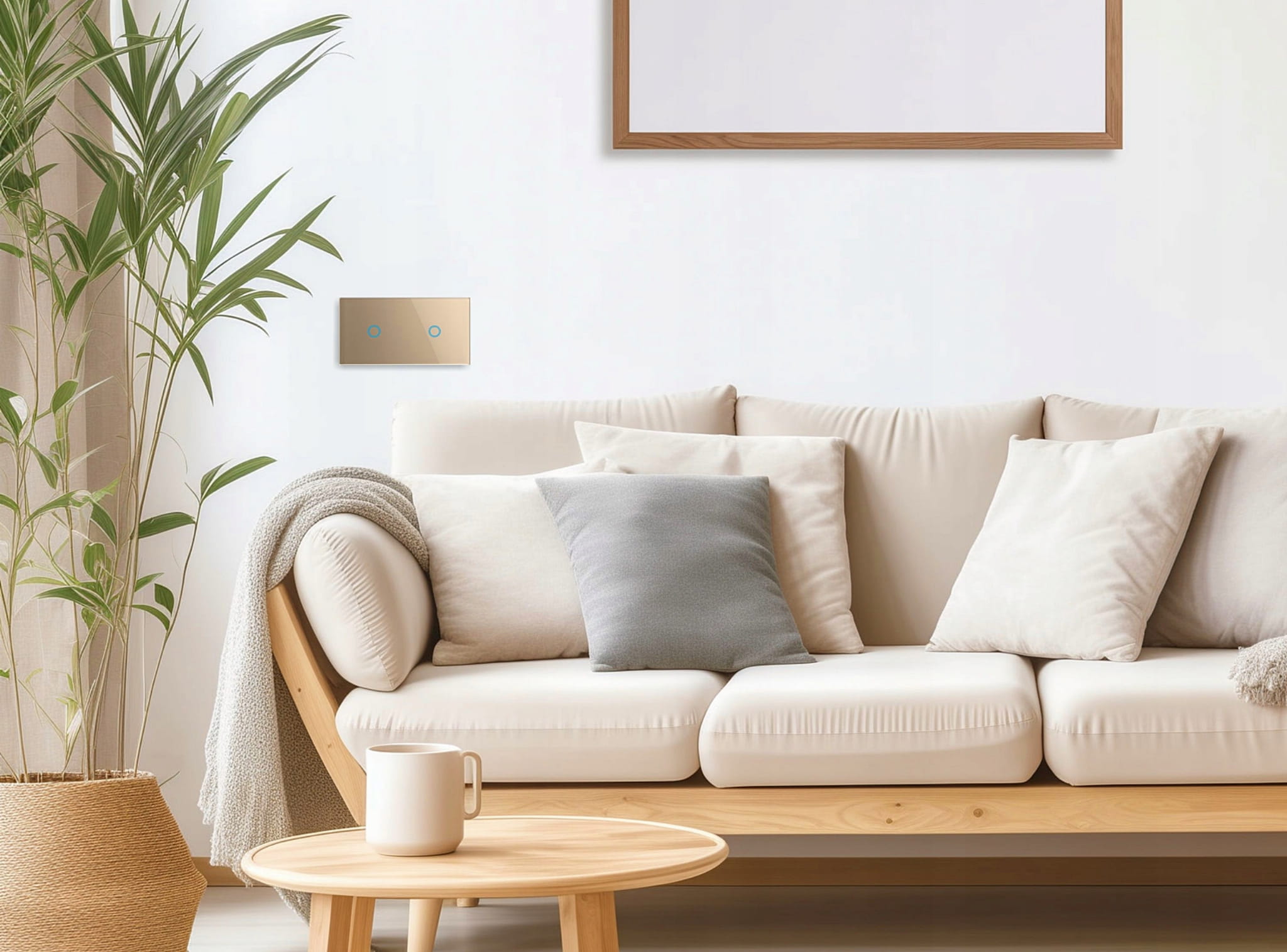 Panel szklany dotykowy włącznik światła podwójny złoty 1+1 2 moduły LED
