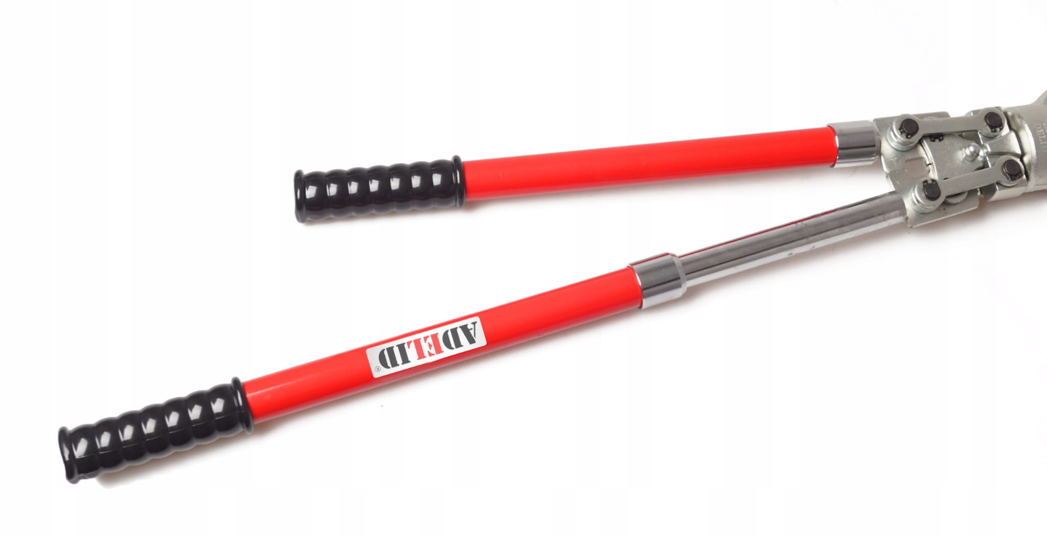 Oryginalna, ręczna praska hydrauliczna do zaciskania złączek na rurach PEX-AL-PEX, PERT-AL-PERT z zestawem 4 matryc, marki ADELID, w zakresie zaciskania od 16 do 32 mm.