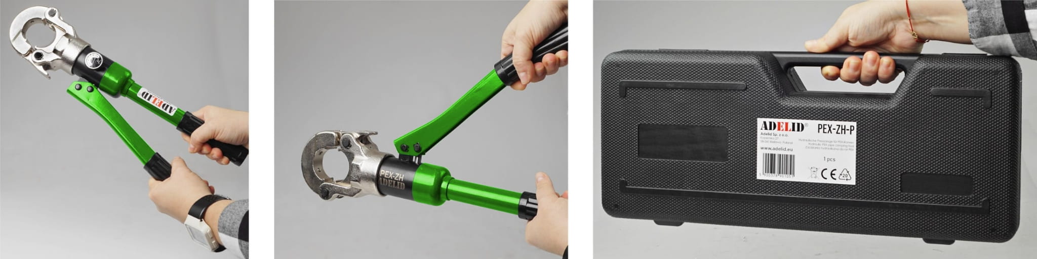 ✅ Zaciskarka hydrauliczna ADELID®(PEX-ZH-P): Główne narzędzie służące do łączenia rur i rurek PEX za pomocą mechanizmu hydraulicznego.