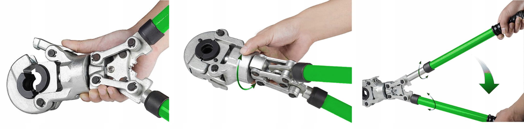 ✅ Teleskopowe rękojeści umożliwiające wydłużenie ich z 57 cm do 80 cm, zmniejszając w ten sposób siłę konieczną do zakucia złączki.