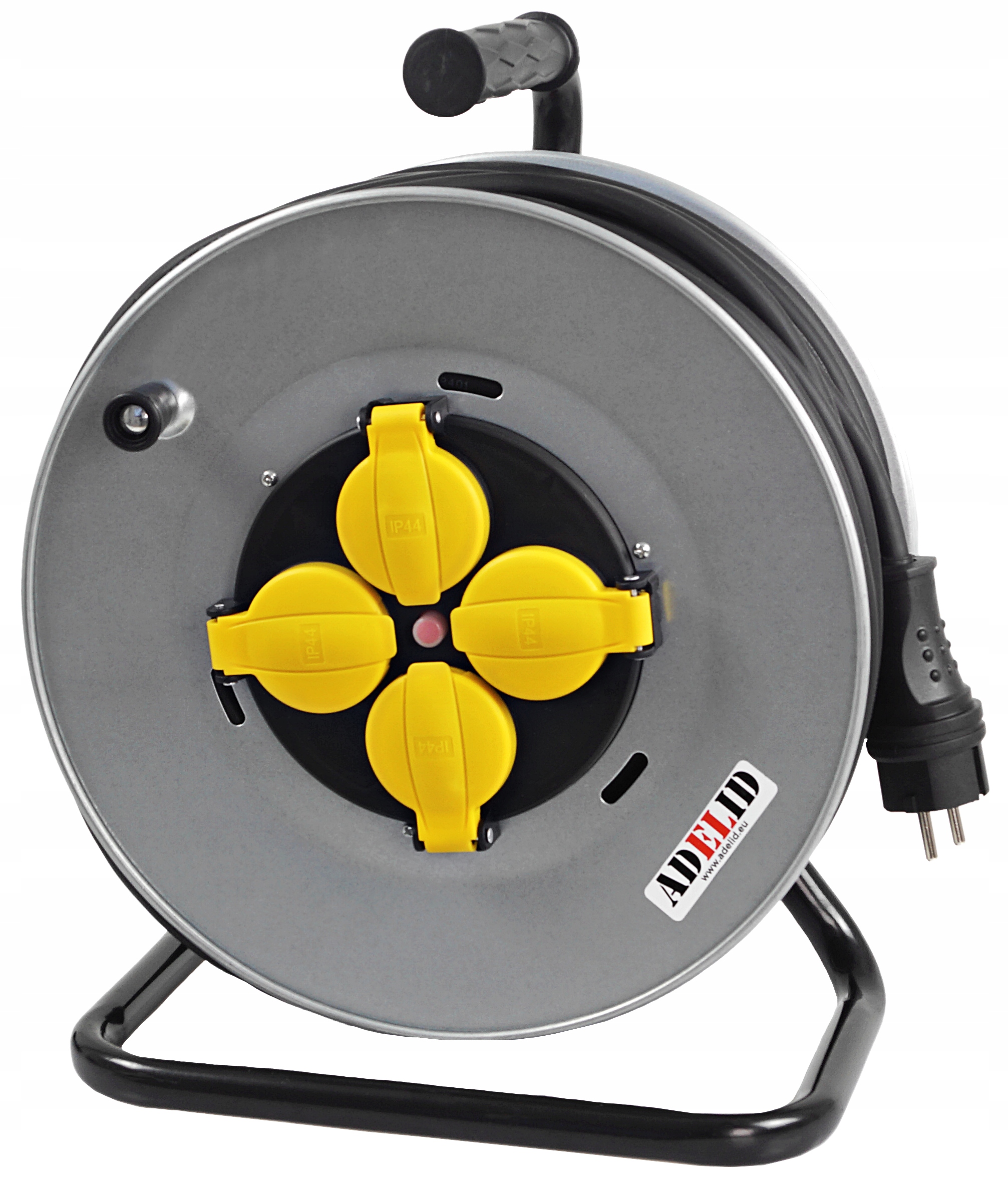 Oryginalny przedłużacz na bębnie, Trianga metal, IP44, z 4 gniazdami 16A 2P+Z 230V IP44, kabel polwinitowy H05VV-F 3*1,5 20M