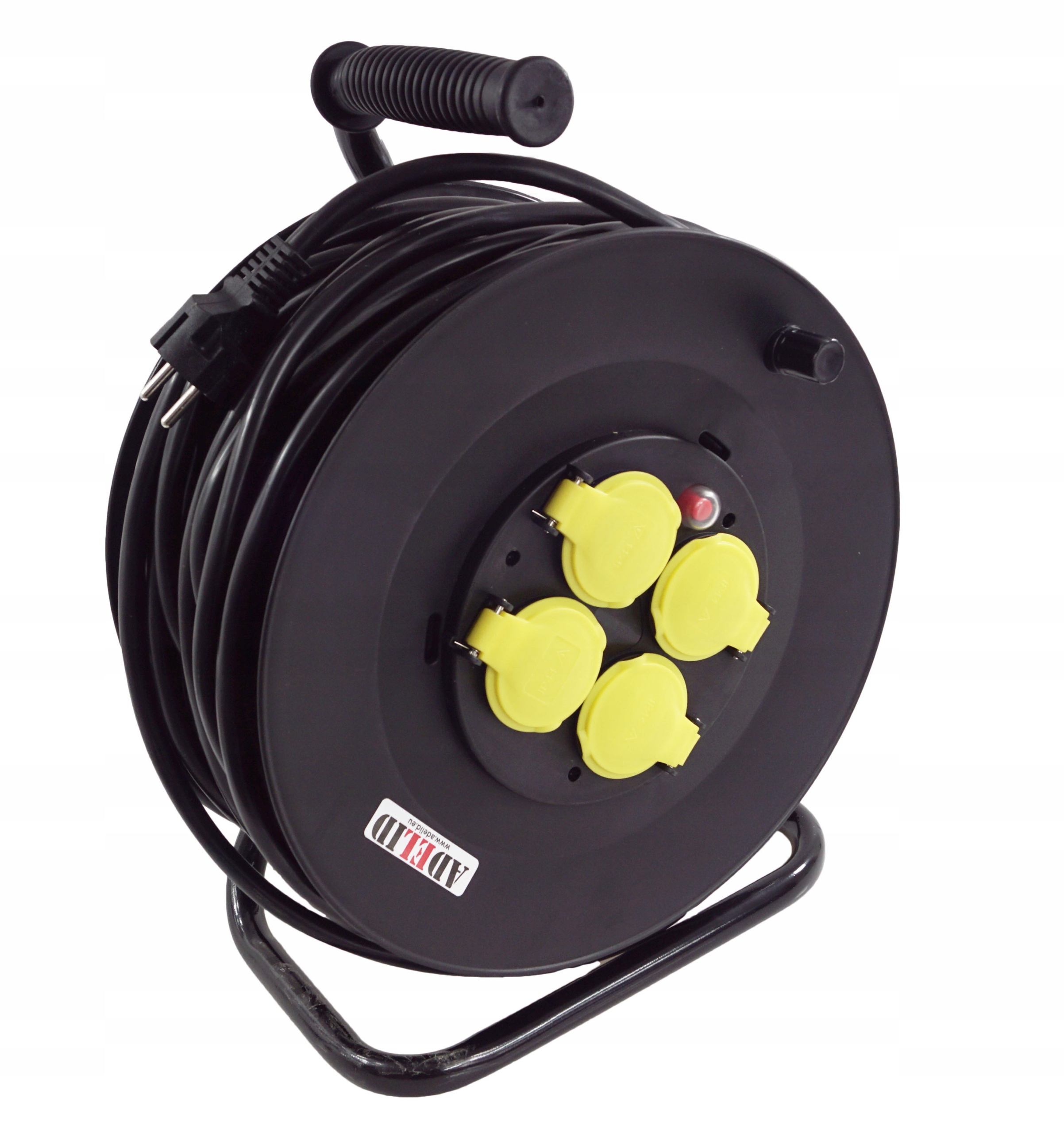 - Bęben posiada uchwyt na kabel oraz hamulec - aby uniknąć przypadkowego, nadmiernego rozwinięcia przedłużacza.