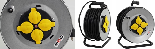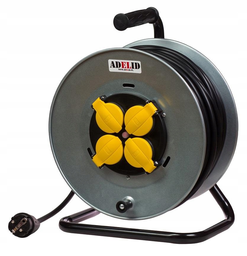- Wysokiej jakości przedłużacz na bębnie metalowym- zwijaku budowlanym, do użytku na budowie, w ogrodach, w pomieszczeniach biurowych czy domowych.