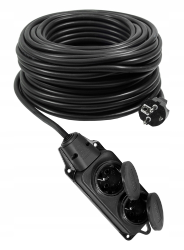 Przedłużacz budowlany z dwoma gniazdami, na kablu polwinitowym (H05VV-F) 3*2,5mm², długości 25m.