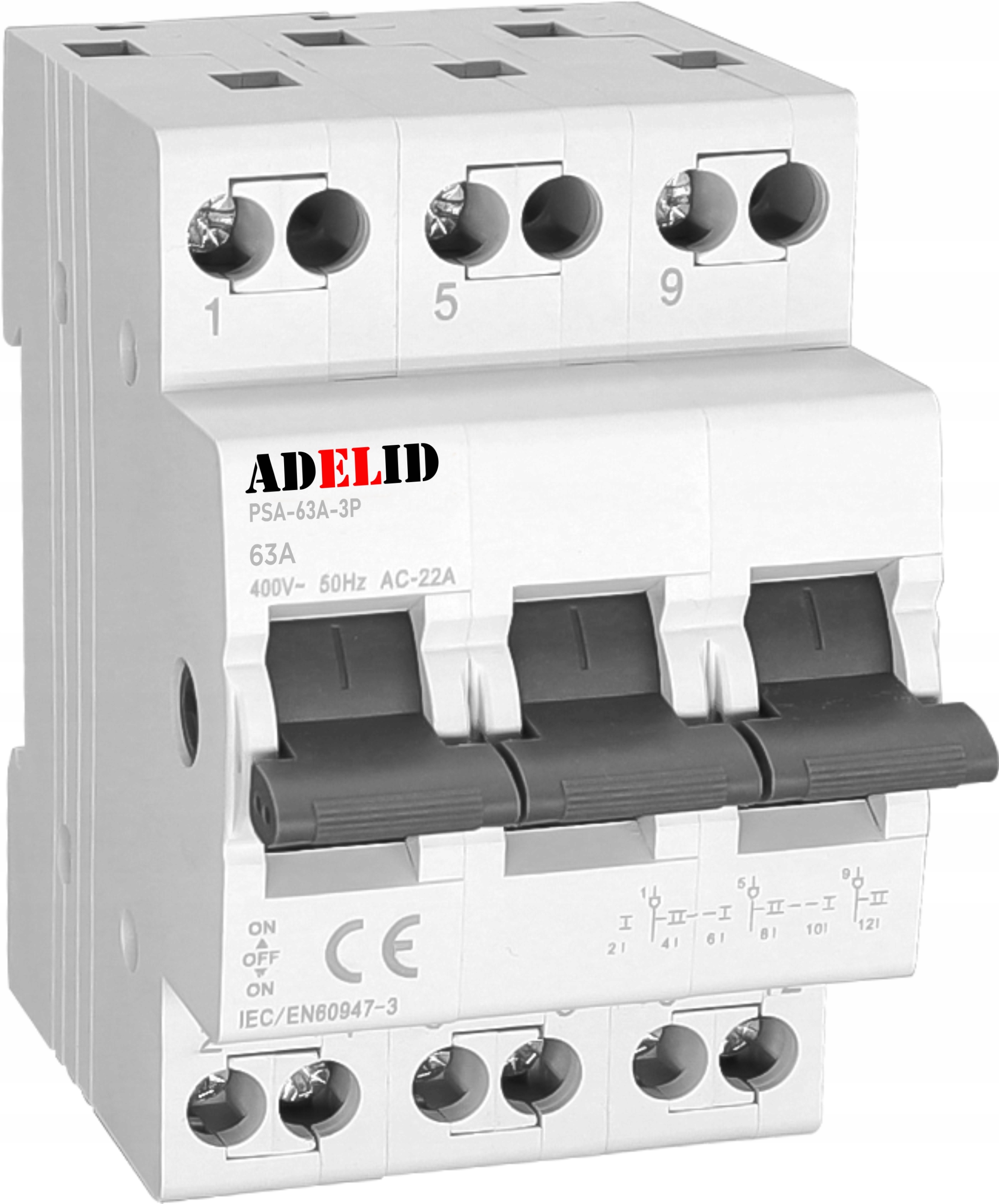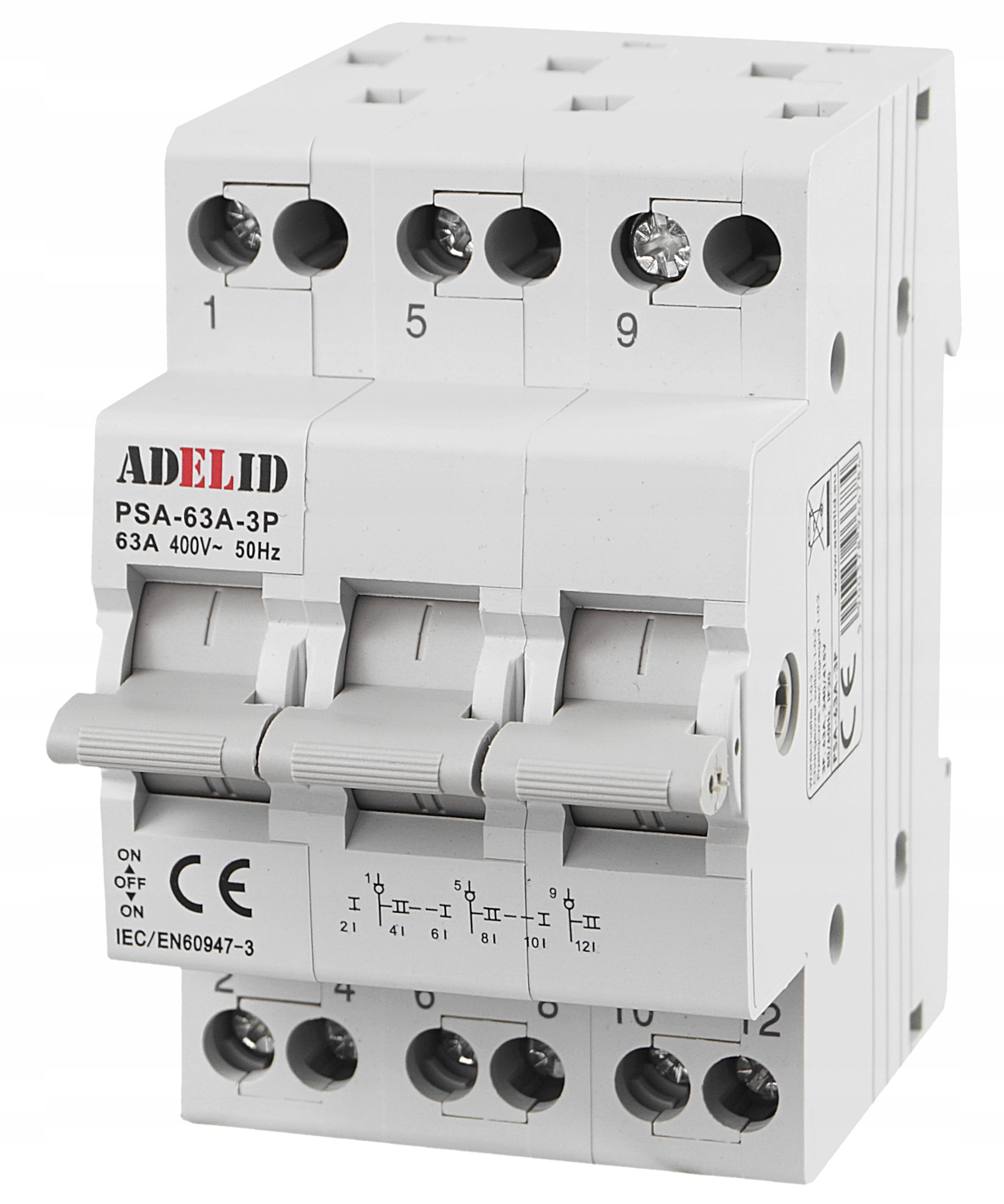 Przełącznik Zasilania Sieć Agregat 3P 63A 1-0-2