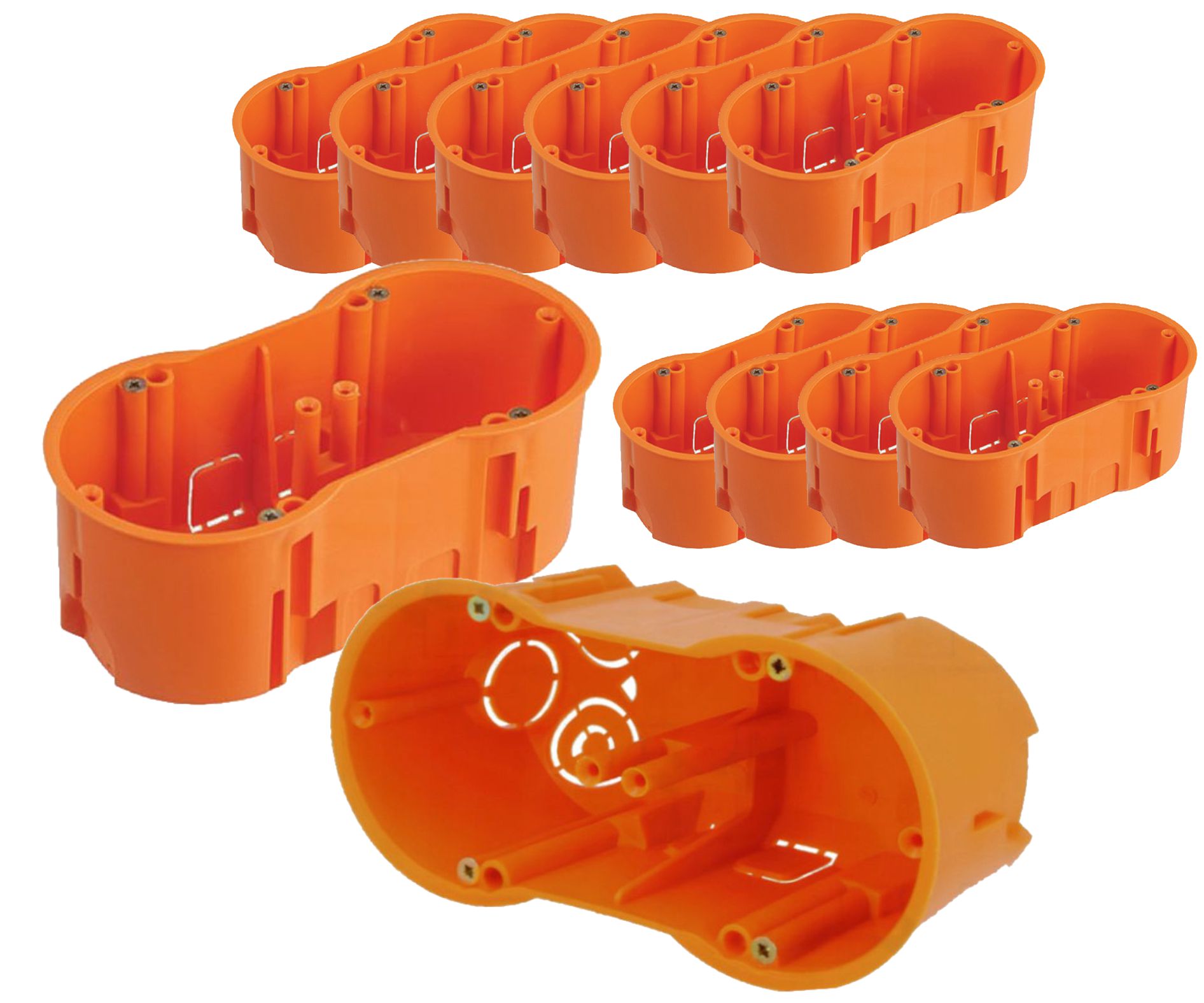 ZESTW 12 SZTUK - PUSZKA INSTALACYJNA, ELEKTRYCZNA, PODTYNKOWA, GŁĘBOKA, PODÓWJNA, PK-60, fi 60, W KOLORZE POMARŃCZOWYM.