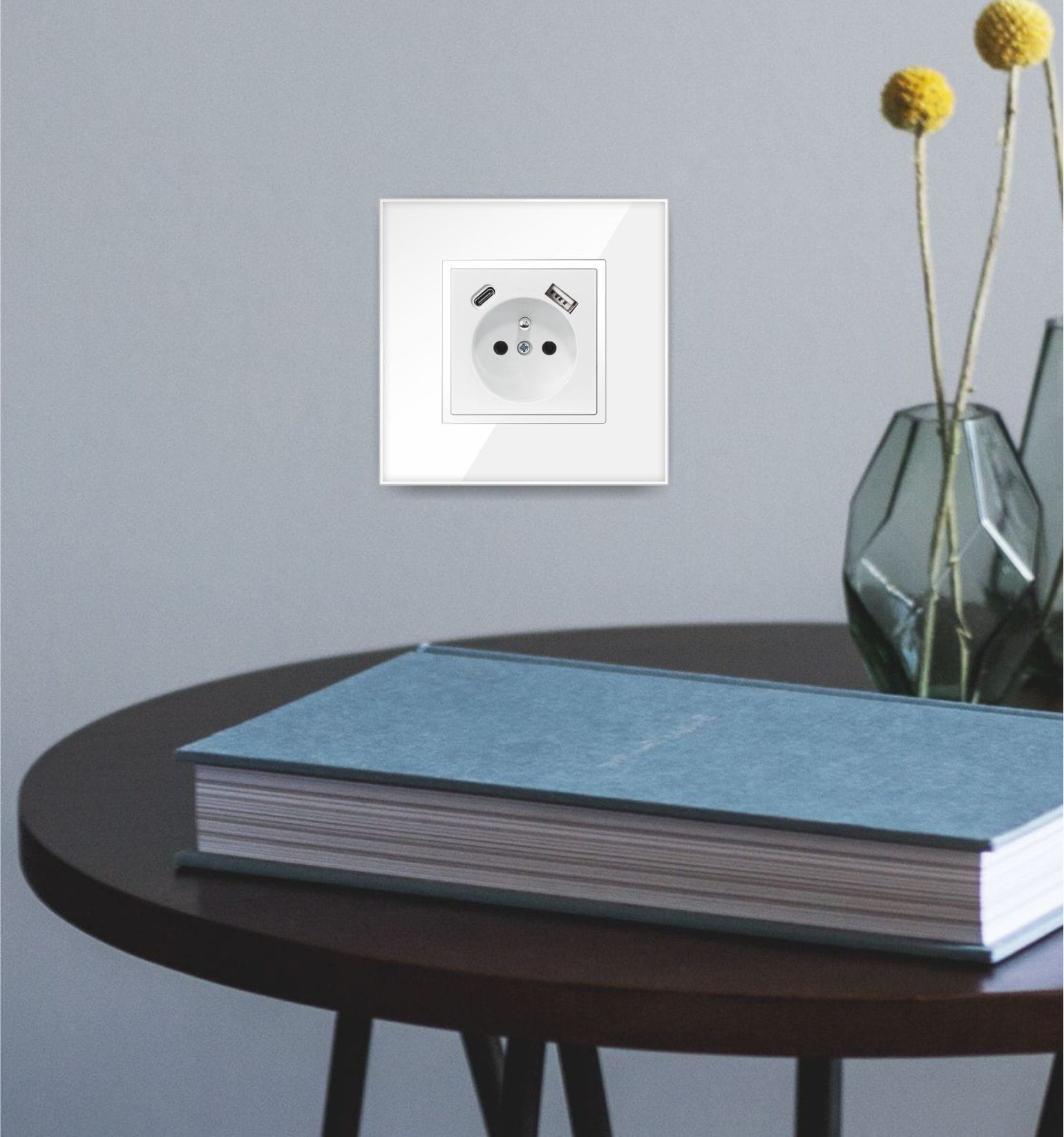 QUADRA gniazdo gniazdko podtynkowe biale z bolcem ładowarką USB C do ramki