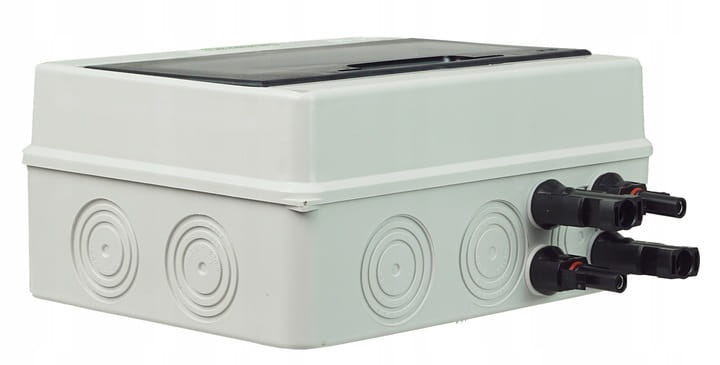 Zabezpieczenie instalacji PV przed przeciążeniami i skutkami zwarć w systemach fotowoltaicznych prądu stałego DC. W pełni okablowana, gotowa do podłączenia.