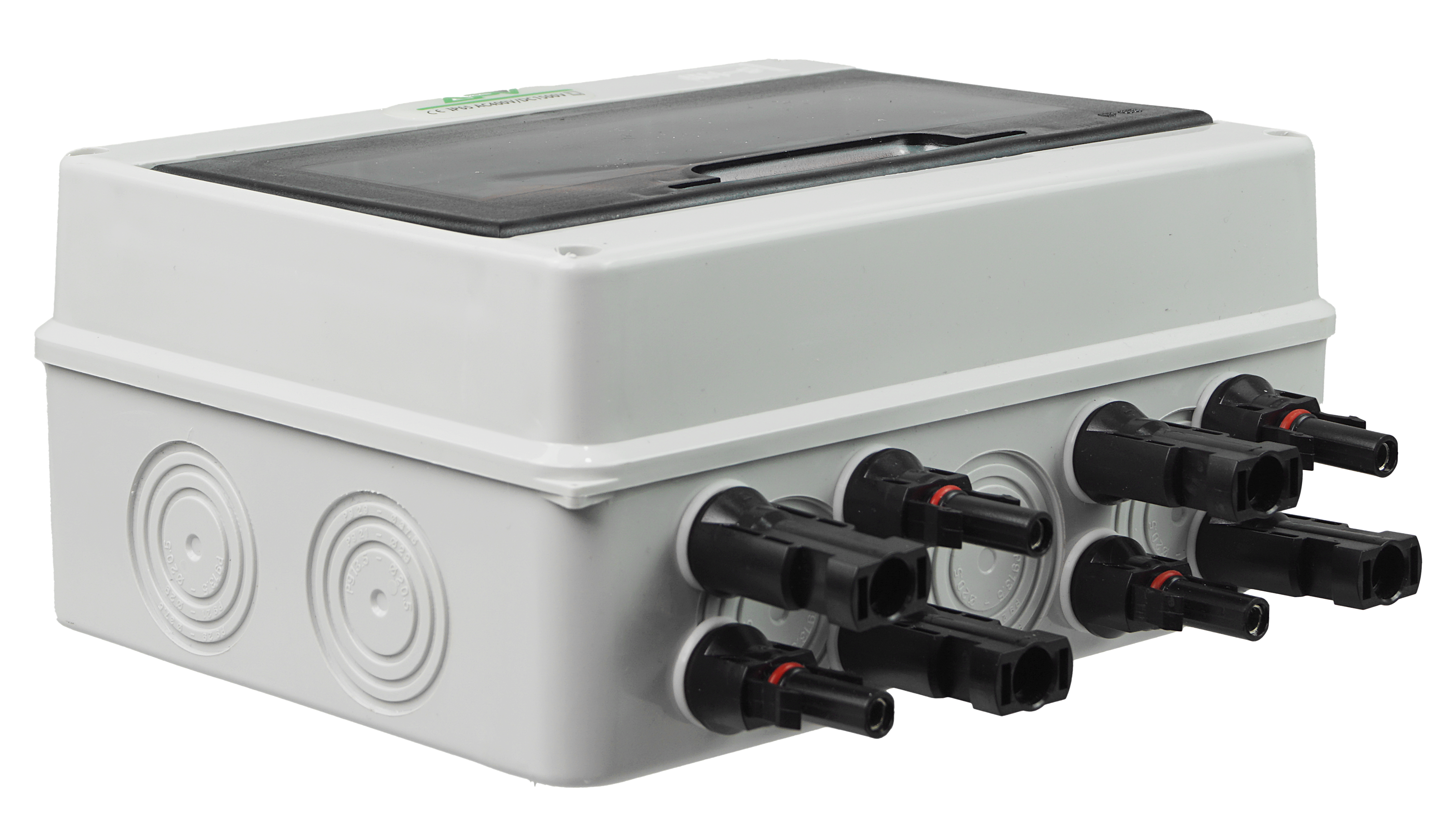 - Rozdzielnica posiada wyprowadzone dławiki kablowe oraz złączki MC4.