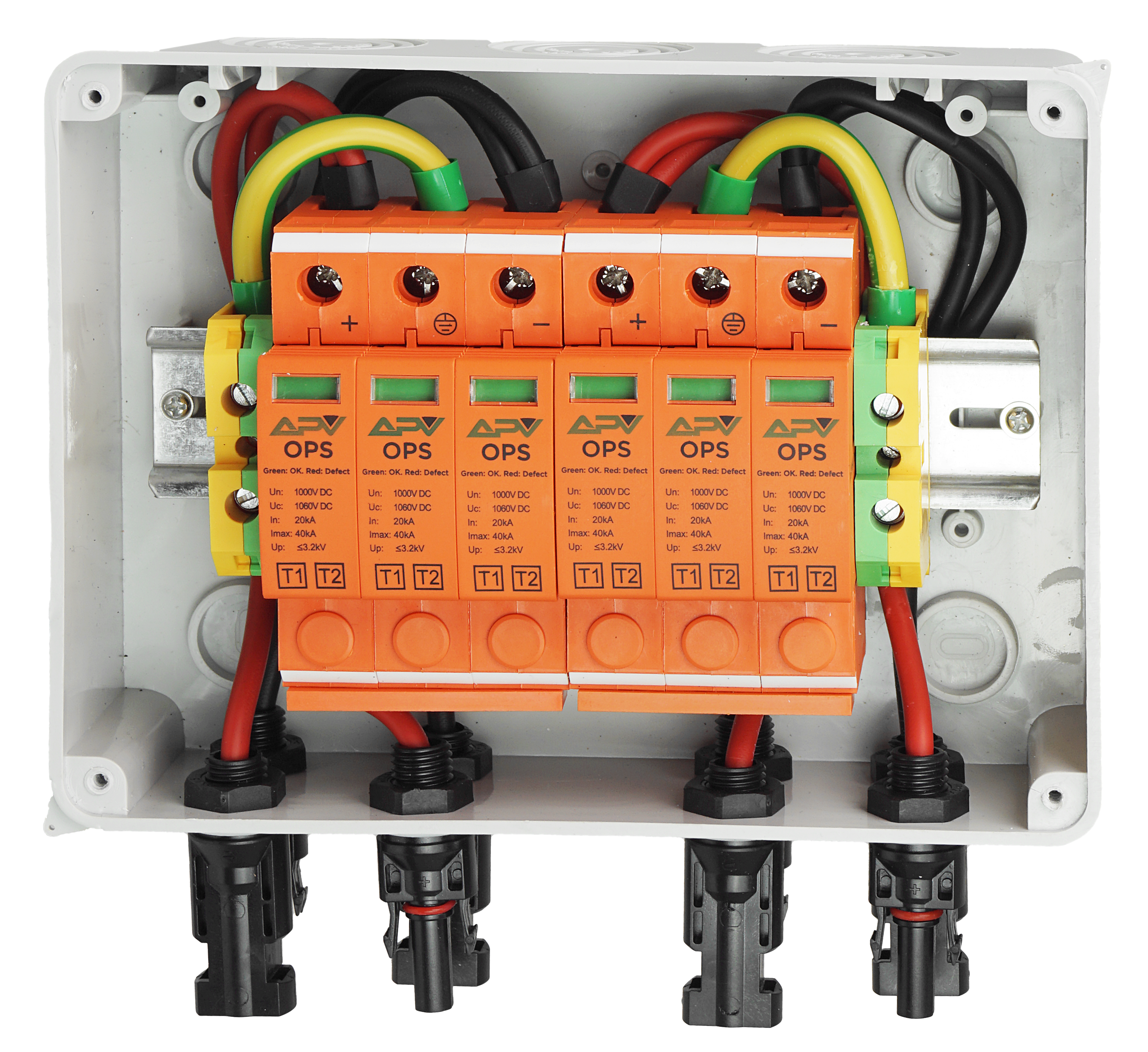Zabezpieczenie instalacji PV przed przeciążeniami i skutkami zwarć w systemach fotowoltaicznych prądu stałego DC. W pełni okablowana, gotowa do podłączenia.