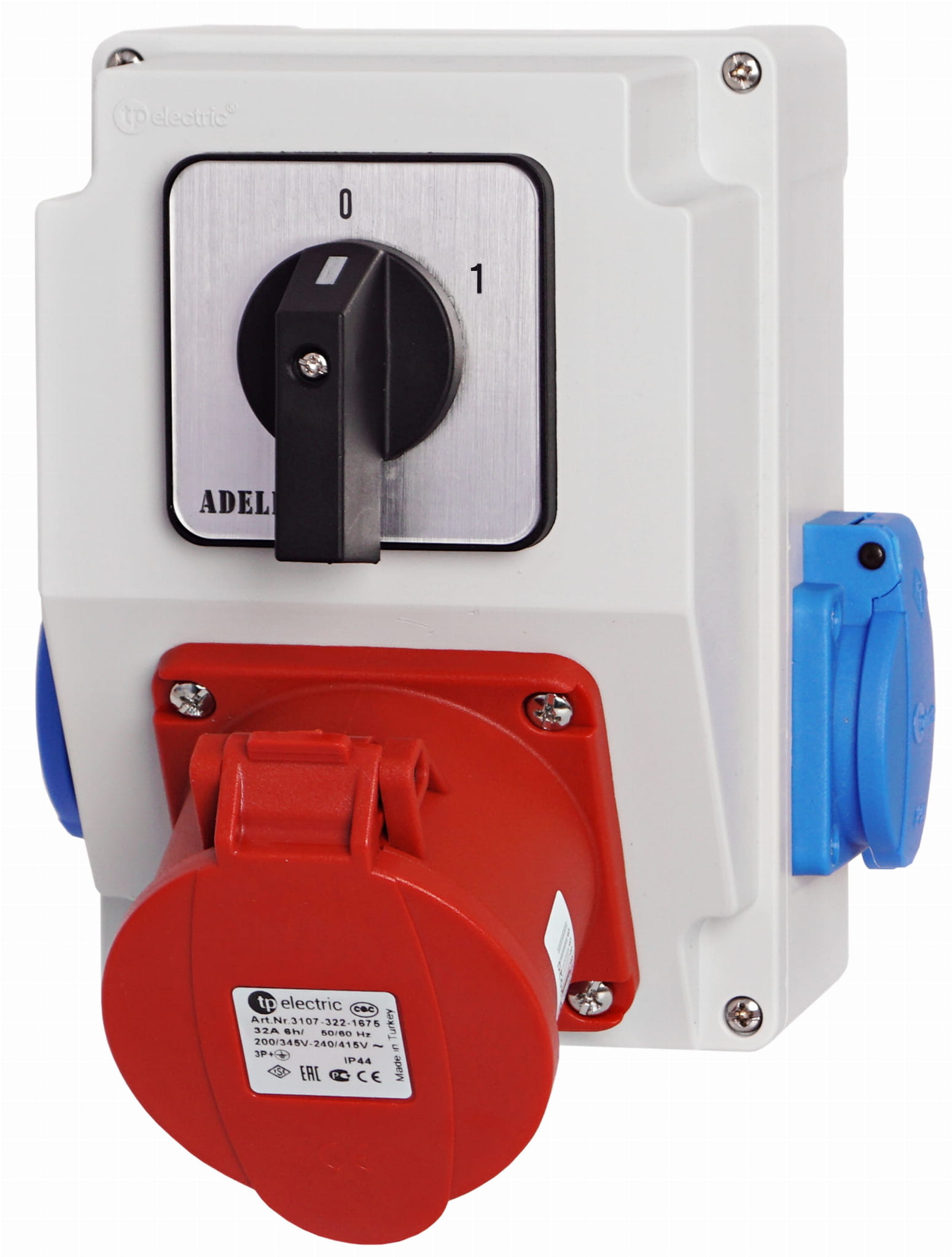 - 1x łącznik tablicowy 32A o funkcji 0-1.