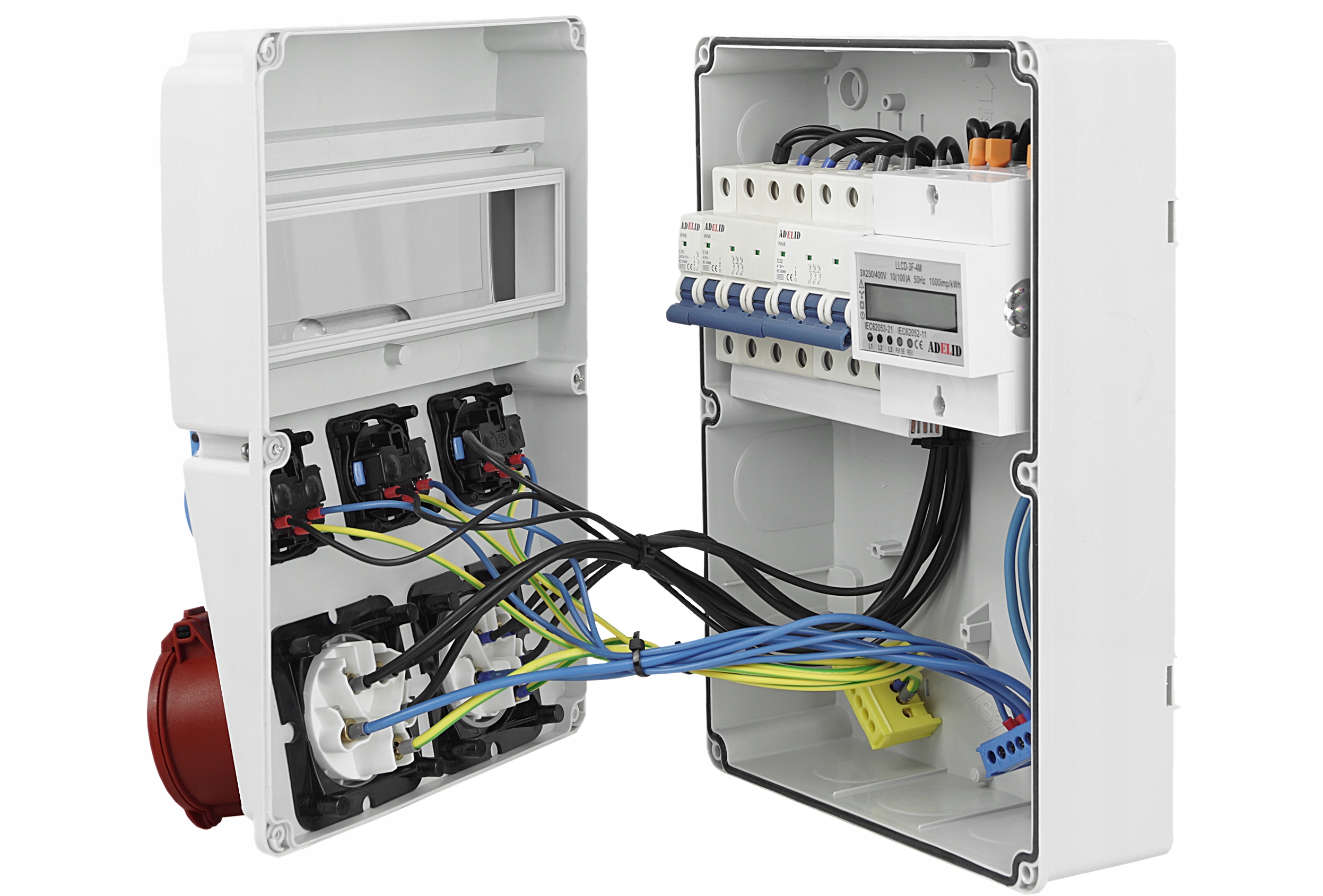 - rozdzielnica w pełni okablowana i podłączona do użytku - wystarczy podpiąć zasilanie kablem 5-żyłowym.