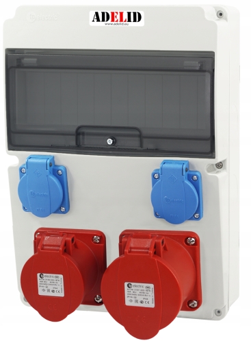ORYGINALNA RODZIELNICA ELEKTRYCZNA, MARKI ADELID, Z GNIAZDAMI SIŁOWYMI 16A ORAZ DWOMA GNIAZDAMI 230V.