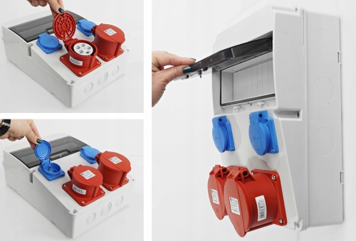 RSX - Rozdzielnice z okienkiem 26 modułowym - maksymalnie 4 gniazda siłowe i 8 gniazd 230V. Dostępne wersje gotowe do podłączenia zasilania i pracy z zabezpieczeniami, występują opcje z licznikami lub wersje bez zabezpieczeń - do dowolnego podłączenia.