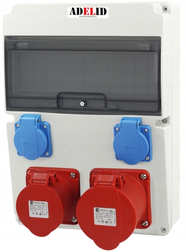 ORYGINALNA RODZIELNICA ELEKTRYCZNA, MARKI ADELID, Z GNIAZDAMI SIŁOWYMI 32A ORAZ DWOMA GNIAZDAMI 230V.