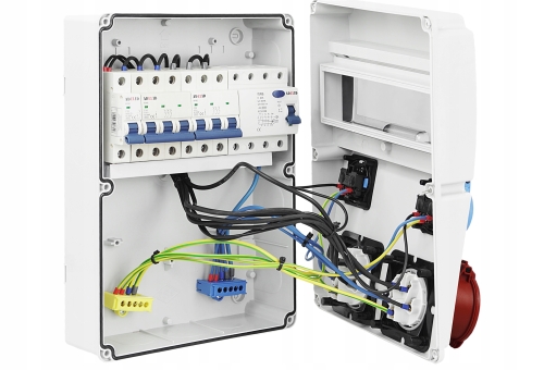 - rozdzielnica w pełni okablowana i podłączona do użytku - wystarczy podpiąć zasilanie kablem 5-żyłowym.