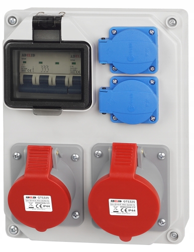 ORYGINALNA RODZIELNICA ELEKTRYCZNA ZABEZPIECZONA, MARKI ADELID, Z DWOMA GNIAZDAMI SIŁOWYM 32A ORAZ DWOMA GNIAZDAMI 230V.