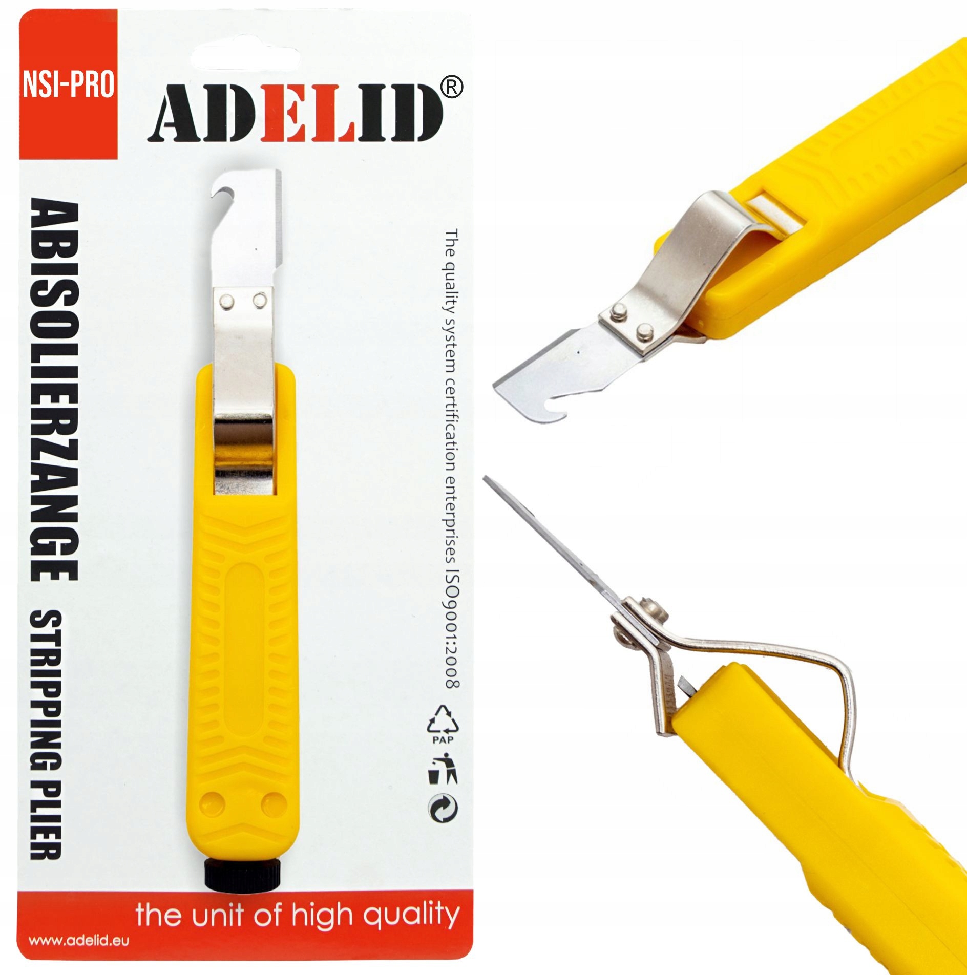 - ADELID NSI‑PRO to wszechstronne narzędzie stworzone z myślą o szybkim, czystym i bezpiecznym usuwaniu izolacji z każdego standardowego kabla okrągłego Ø 8–28 mm.