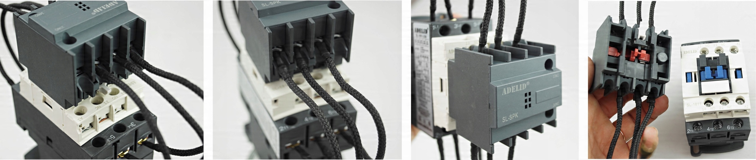 - Wersję SL+SPK produkcji Adelid zaprojektowano do przełączeń trójfazowych. Szczególną cechą tego typu stycznika są jego zestyki umożliwiające załączanie rezystorów ograniczających, które zamykają się jedynie na czas potrzebny do ograniczenia prądu udarowego, a następnie otwierają się, aby uniknąć ewentualnego przepływu prądów szczątkowych przez rezystory.