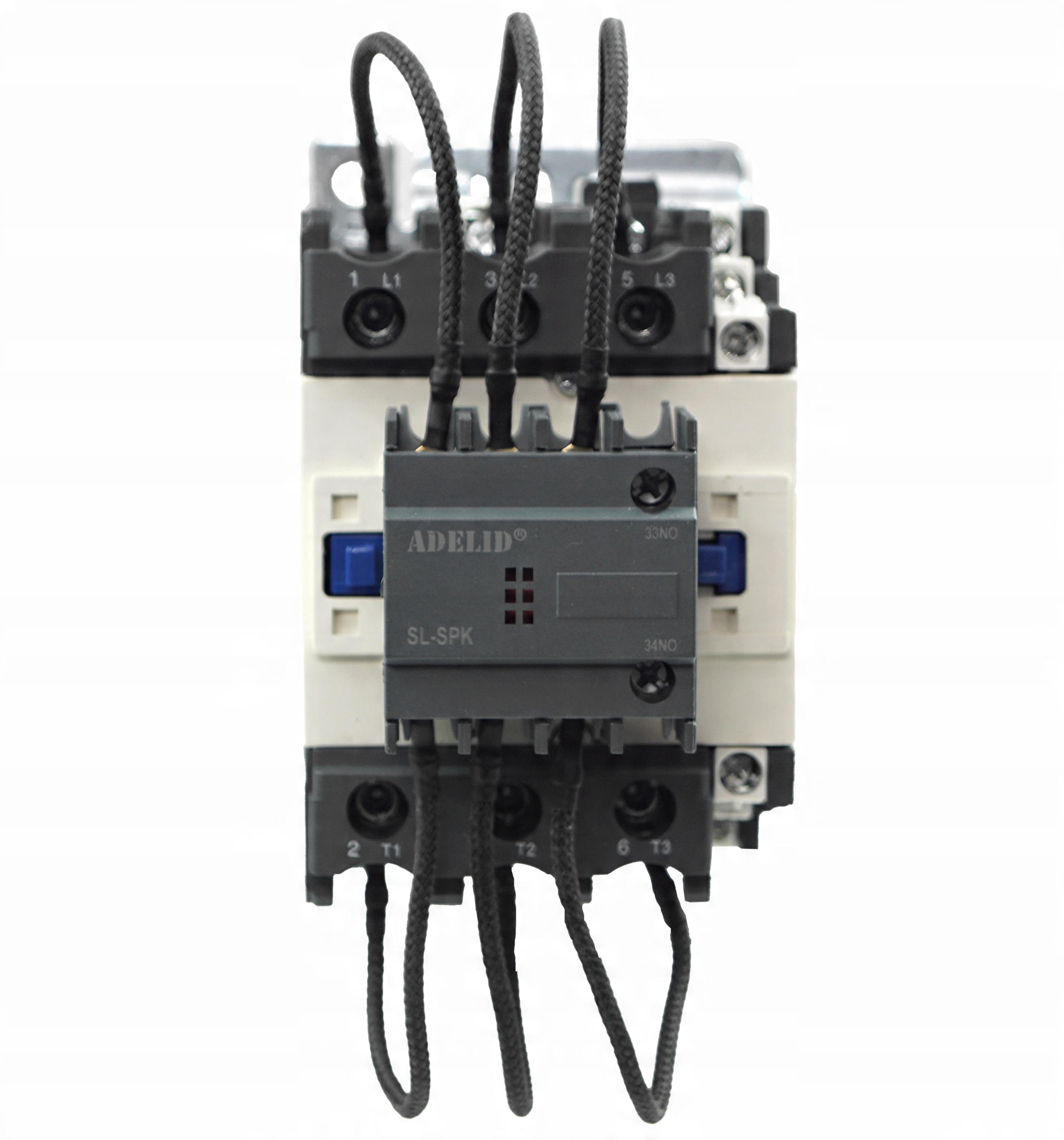 - Wersję SL+SPK produkcji Adelid zaprojektowano do przełączeń trójfazowych. Szczególną cechą tego typu stycznika są jego zestyki umożliwiające załączanie rezystorów ograniczających, które zamykają się jedynie na czas potrzebny do ograniczenia prądu udarowego, a następnie otwierają się, aby uniknąć ewentualnego przepływu prądów szczątkowych przez rezystory.