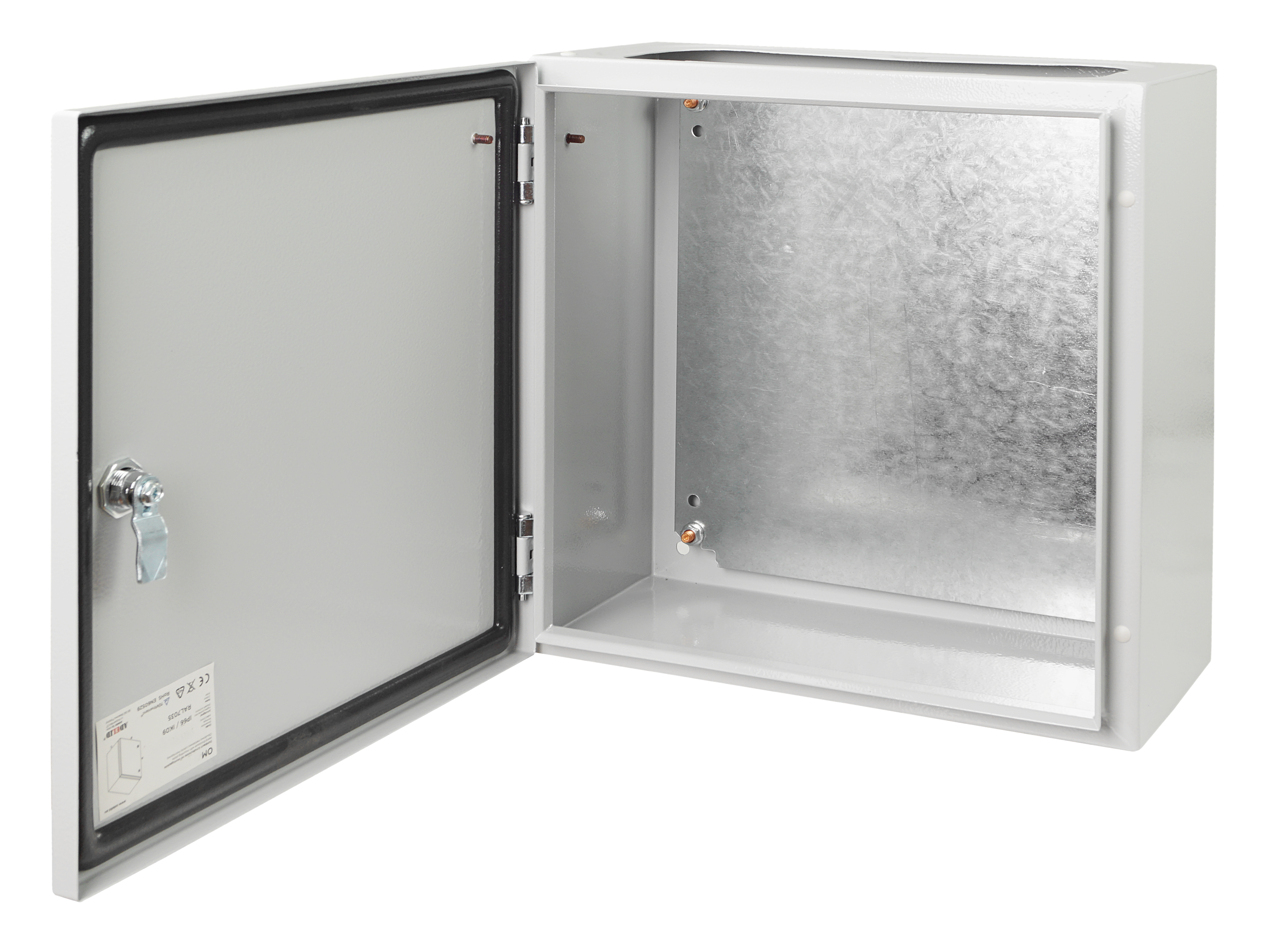 Obudowa metalowa o wymiarach: 50x50x20 cm.