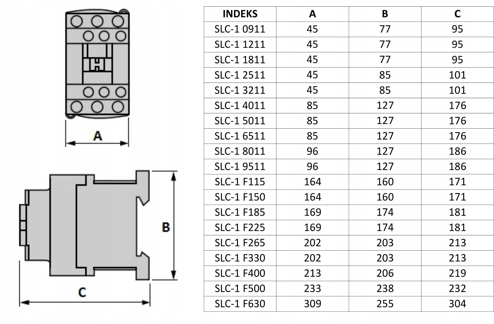 WYMIARY STYCZNIKÓW SERII SLC-1:
