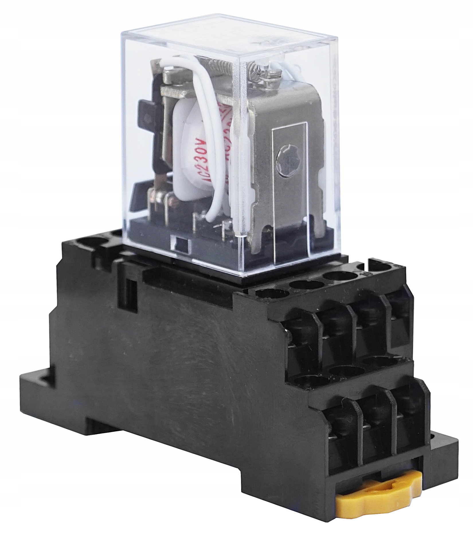 Zestaw przekaźnik przemysłowy R4 24V AC z podstawką przekaźnika, na szynę TH35.
