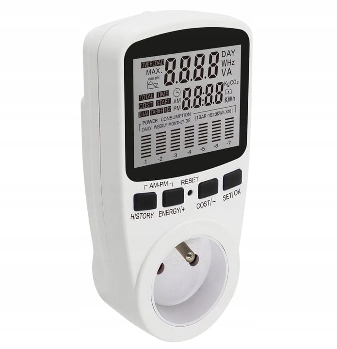 - nowoczesny watomierz pozwalający kontrolować zużycie energii urządzeń elektrycznych
